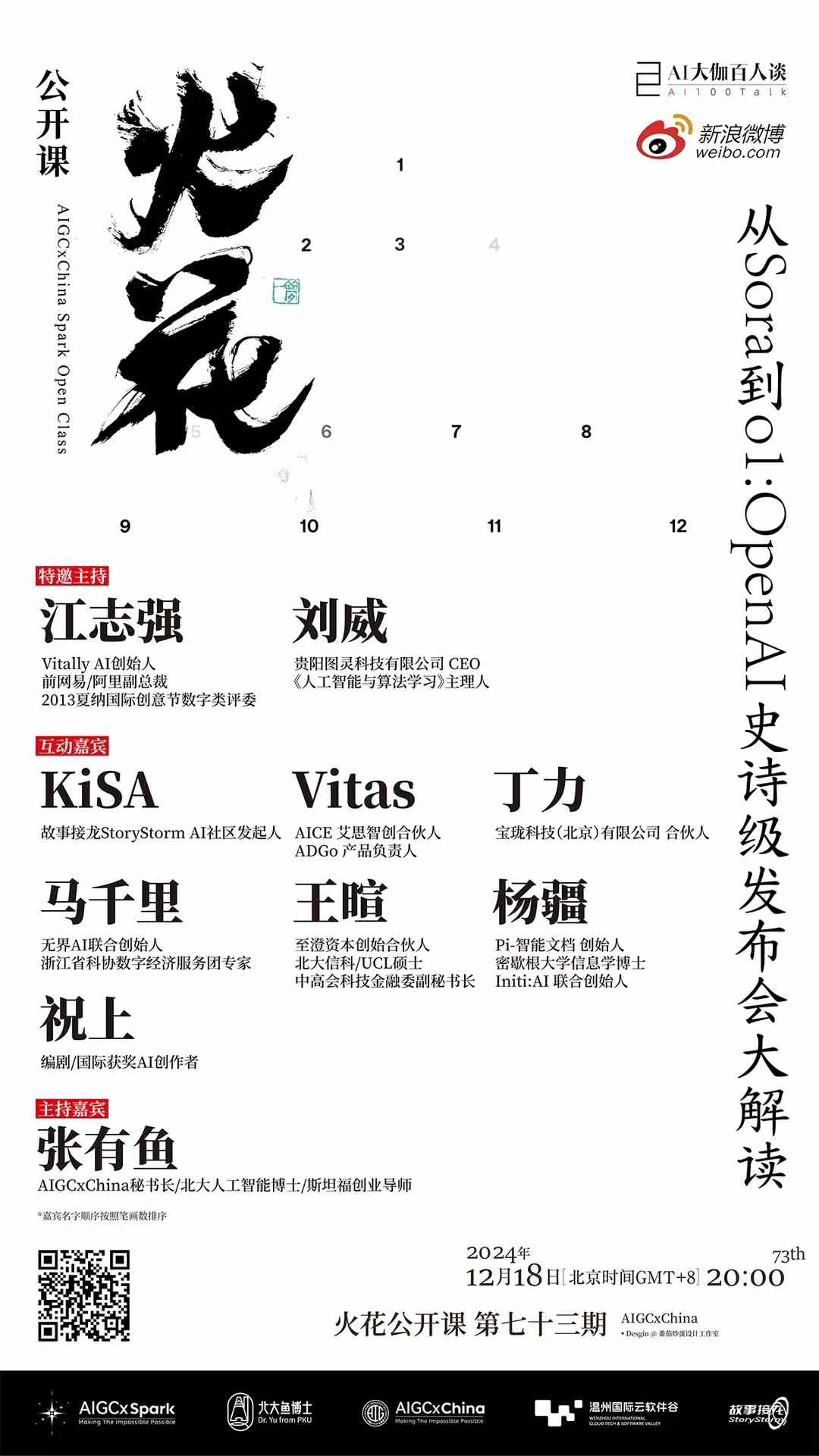 OpenAI在12月连续12天的产品发布,不仅推出了Sora视频生成、O1推理模型、GPT-4 Pro等重磅产品,还带来了Project等创新功能。本期火花公开课邀请10位AI领域专家,从技术突破、产业影响、未来趋势等多维度深度解读这场史诗级发布会。