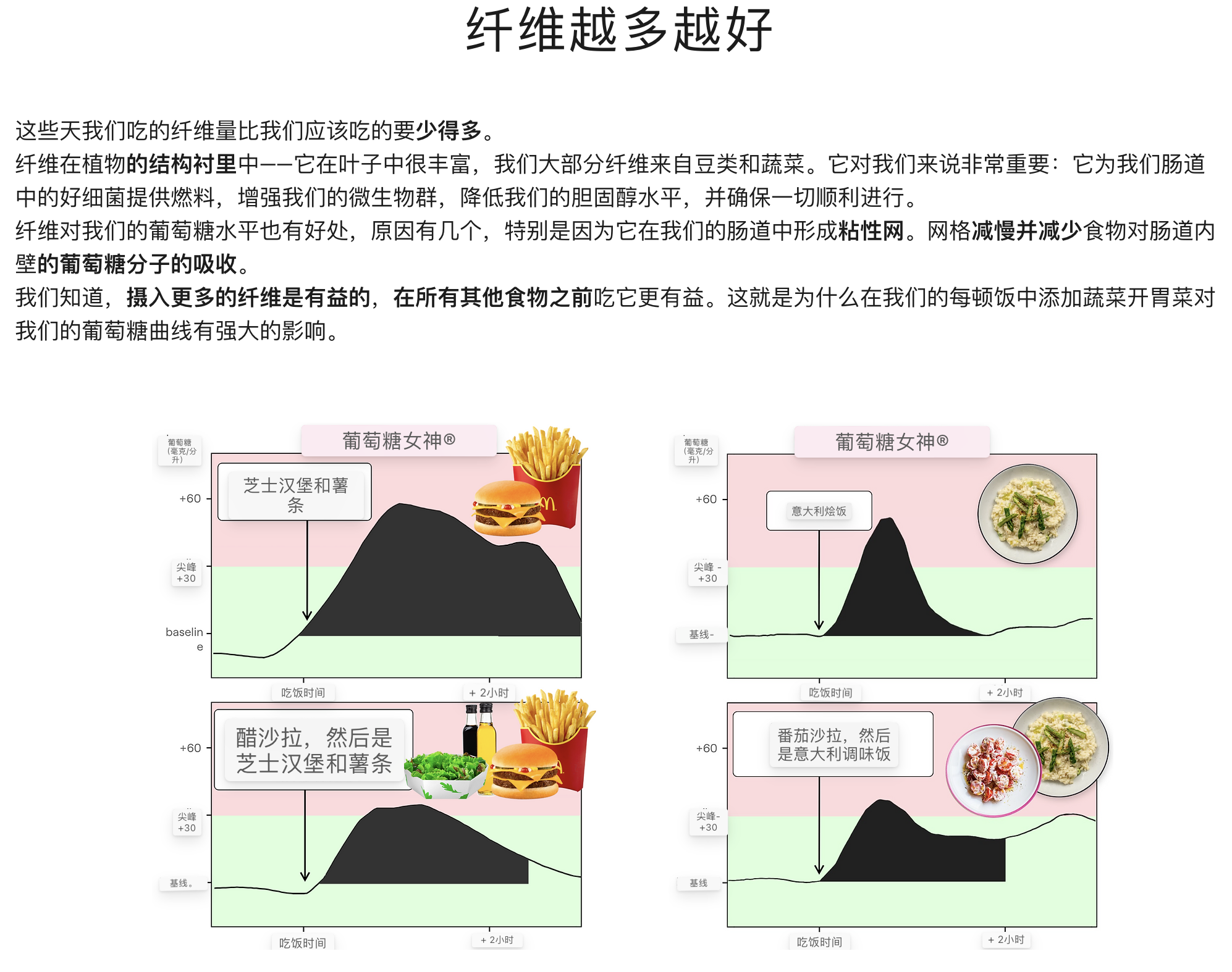 - 增加纤维摄入:在每餐前增加绿色蔬菜或沙拉,可以减缓食物在胃中的排空速度,减少血糖的吸收速度。