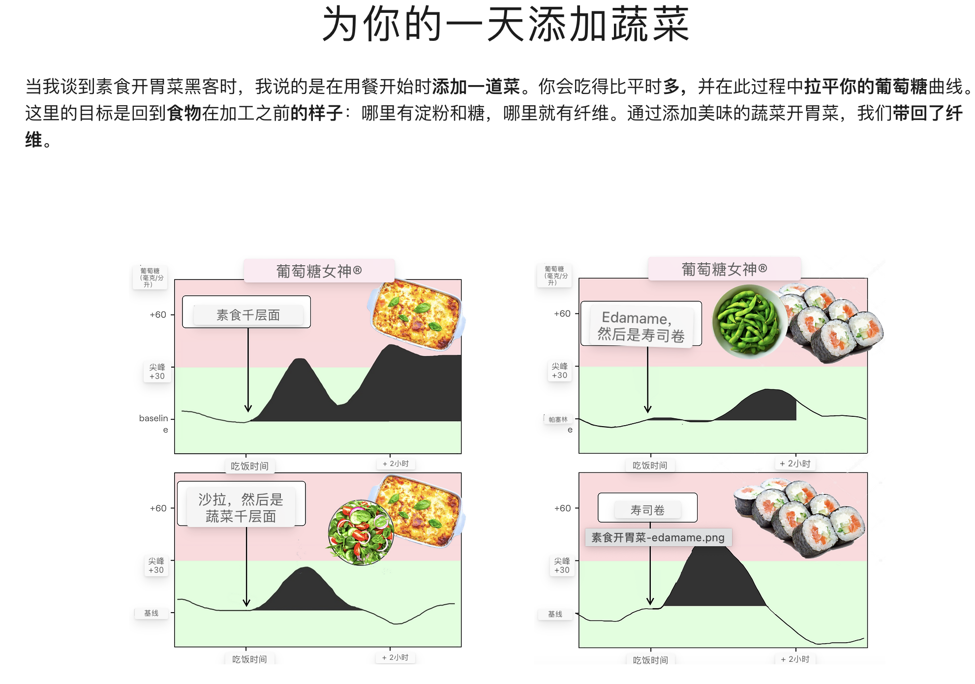 - 改变进食顺序:先吃蔬菜、蛋白质和脂肪,最后吃碳水化合物。这可以显著降低血糖峰值。