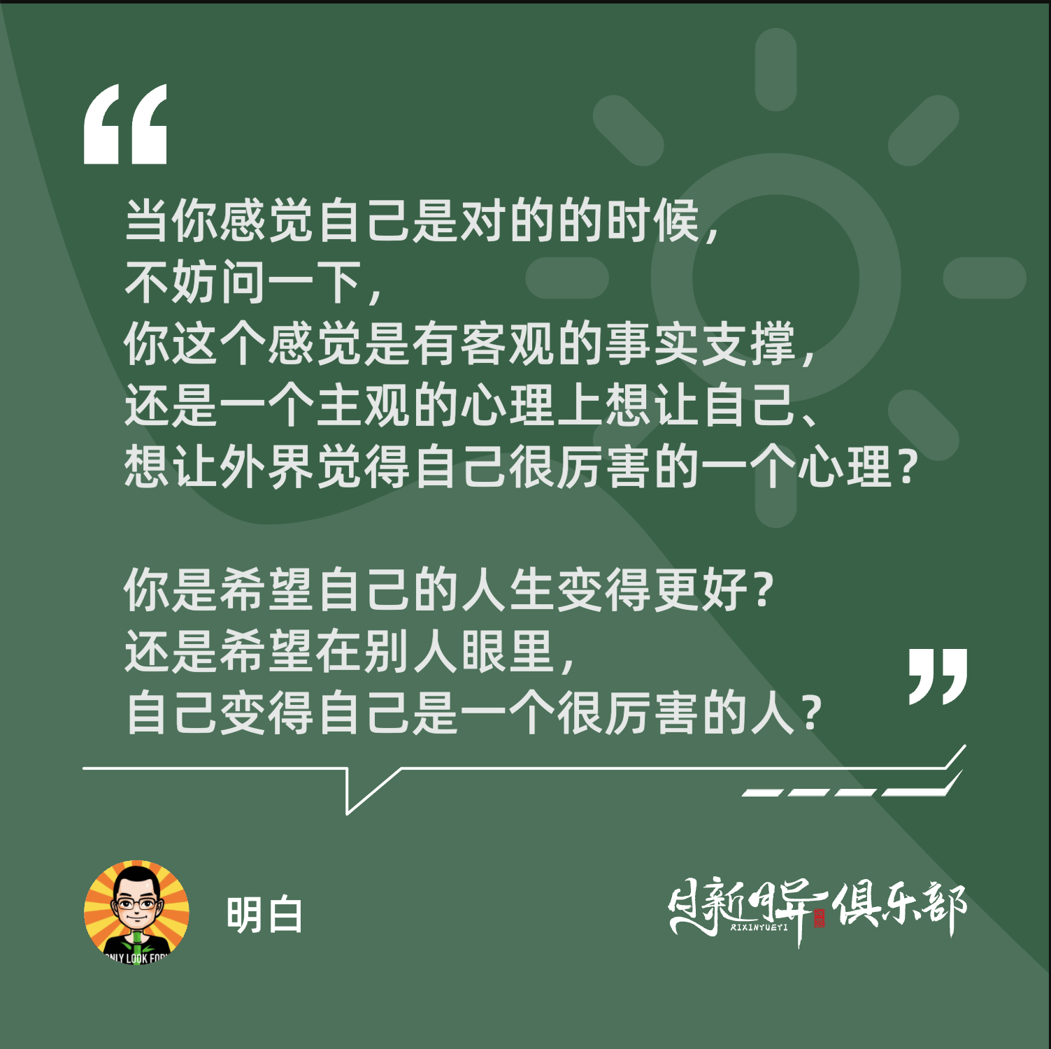 所以我觉得感觉自己是对的这件事,它是一个能力,它不是一种感觉,它是需要我们对自己有一个一个客观的认识。