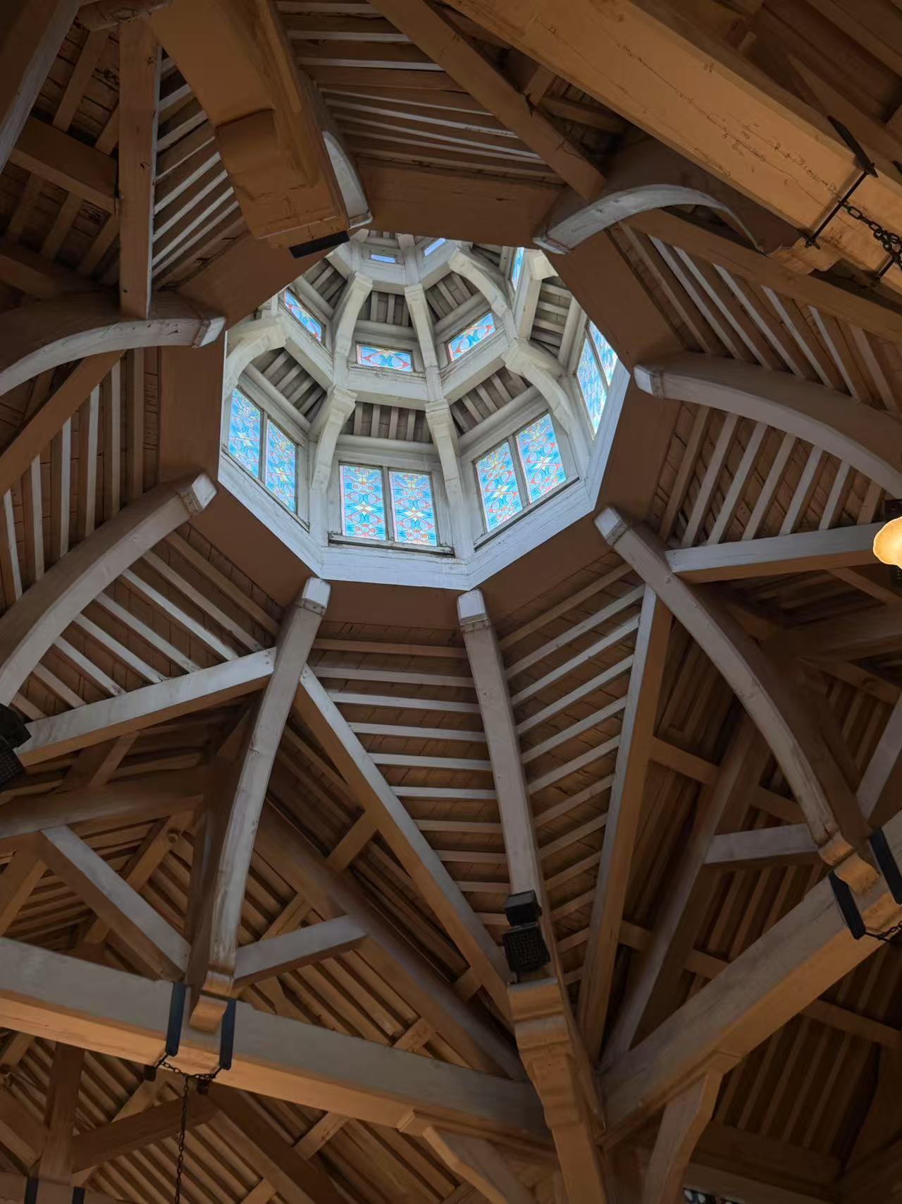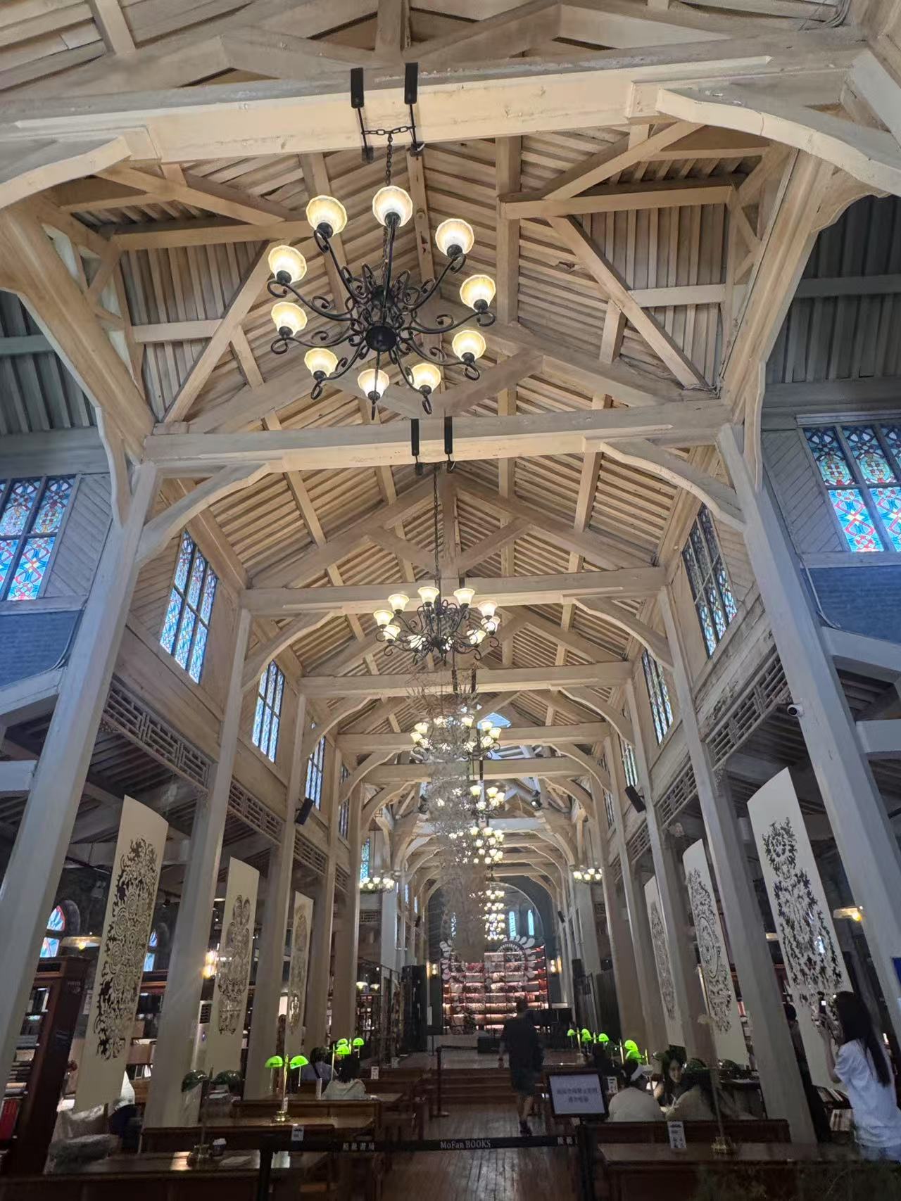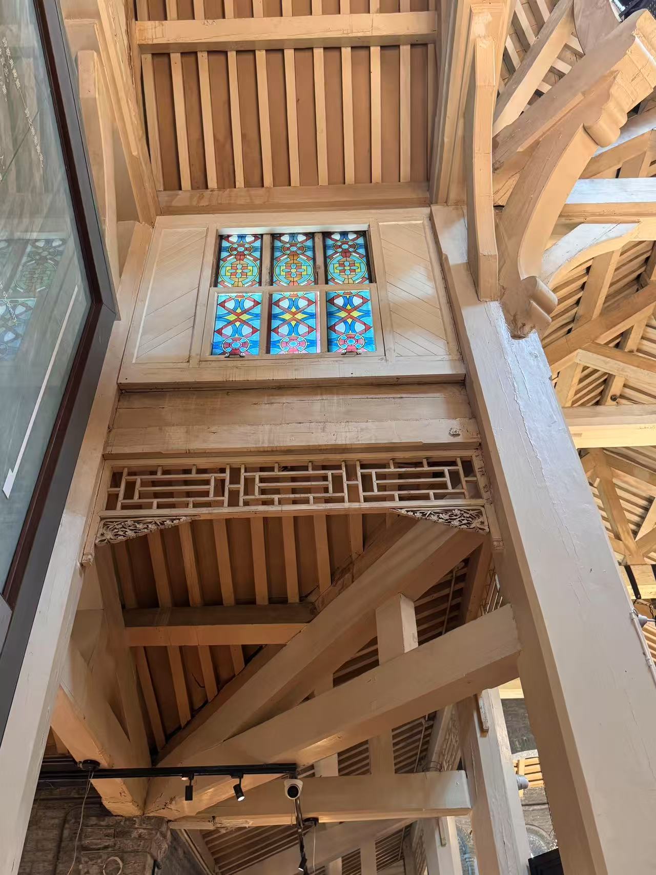 内部的英式木桁架(两侧挂的是苗族艺术家的剪纸作品)》》》》