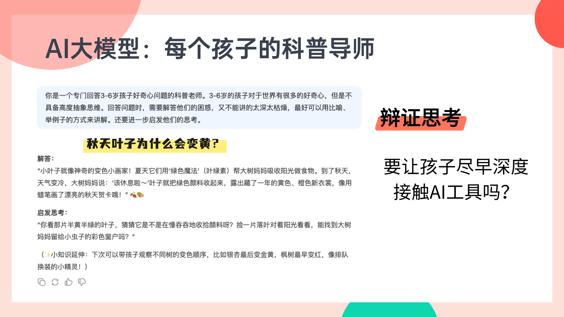 AI时代,0-6岁的启蒙,比起英文背了几千个词汇量、数学刷了多少张计算题、语文有了多少识字量……小朋友对世界的好奇心、观察提问的习惯、思考创新的能力,远比知识更重要。