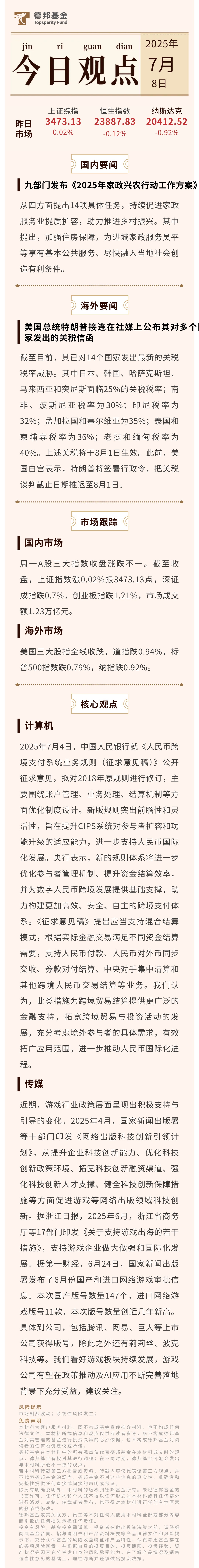 7月8日财经速递,带您最快跟踪板块表现和市场资讯!