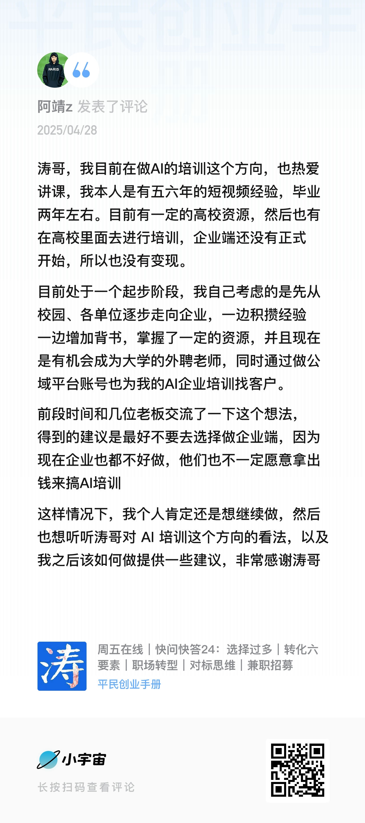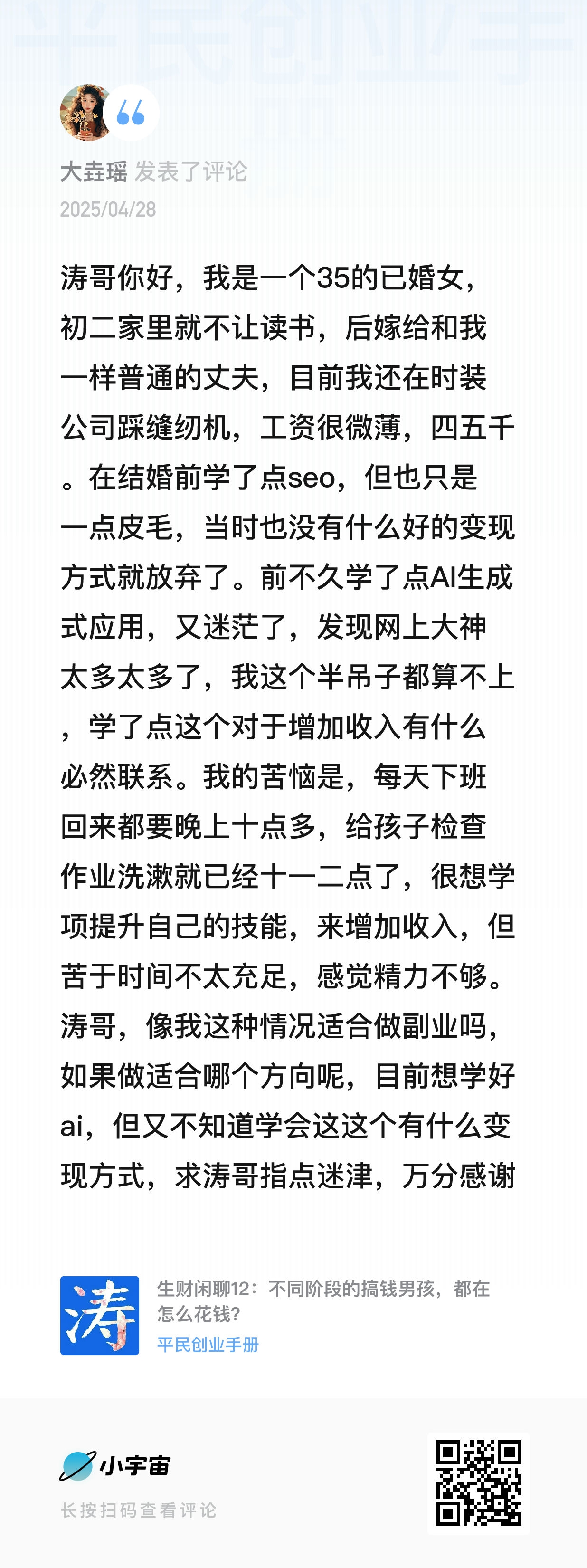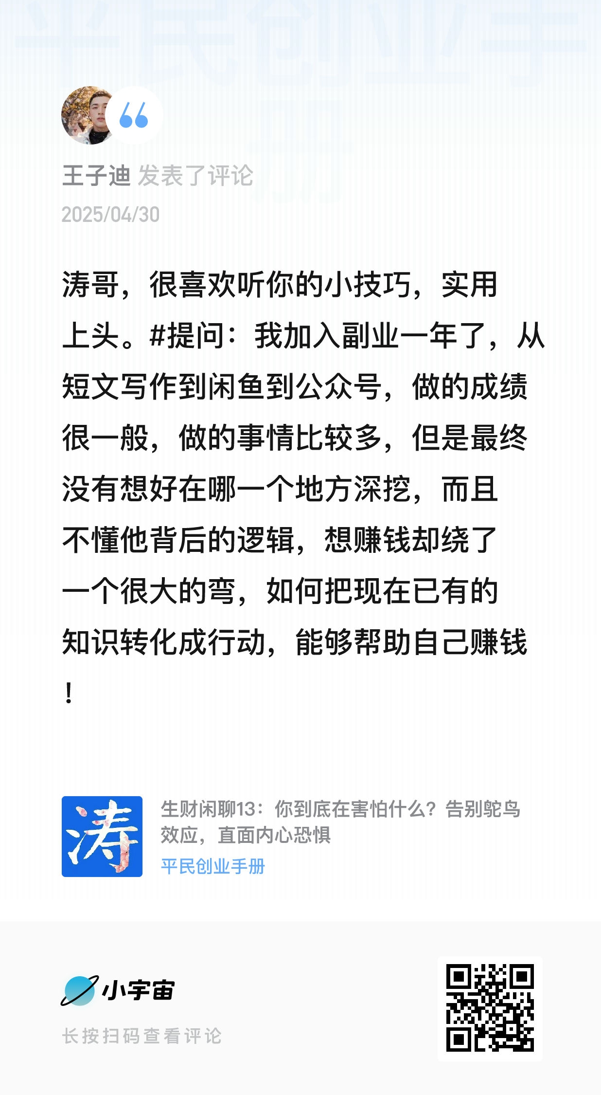 我的微信:xuejieyou6,欢迎撩我,我在「屋里涛说」等你,来星球《平民创业手册》有问必答,