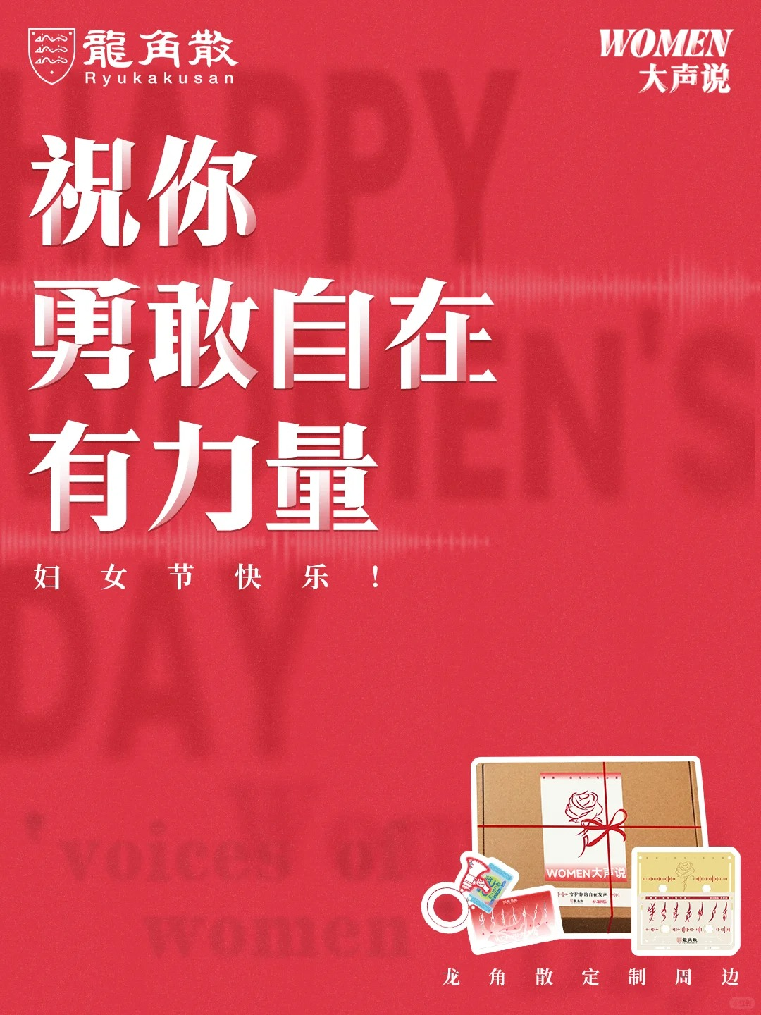龙角散携手联邦走马推出特别企划活动「Women 大声说」,联动全国 10 家女性相关的独立书店,举办了一系列女性发声的活动。活动推出了「自在发声」女性书籍盲盒,并在整个三月不定期举办读书会和观影活动,深入探讨女性社会议题。同时,龙角散还携手联邦走马共同开发了两款定制周边,让女书文字遇上扩音器与润喉糖,祝每一位女性勇敢、自在、有力量。龙角散作为声音的守护者,将品牌理念融入节日文化,通过与文化机构的合作,把「发声」转化为具象的社会行动,从身体到精神给予女性全方位的关怀。
