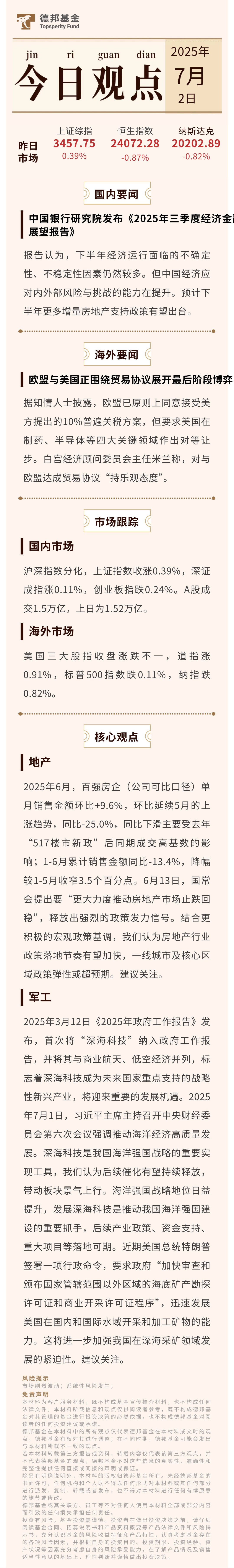 7月2日财经速递,带您最快跟踪板块表现和市场资讯!