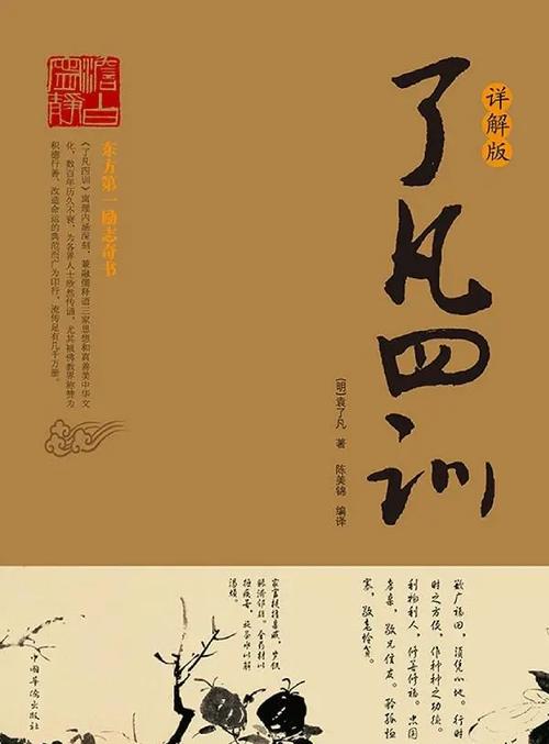 通过立命之学、改过之法、积善之方、谦德之效四个部分来讲解如何改变命运。作者以亲身经历,讲述了改变命运的过程。原本为教训自己的儿子,故取名《训子文》;其后为启迪世人,遂改今名。《了凡四训》蕴含着中国文化的深邃和智慧,包含了丰富的劝善思想,体现了中华传统文化修身的智慧,被誉为“东方第一励志奇书”