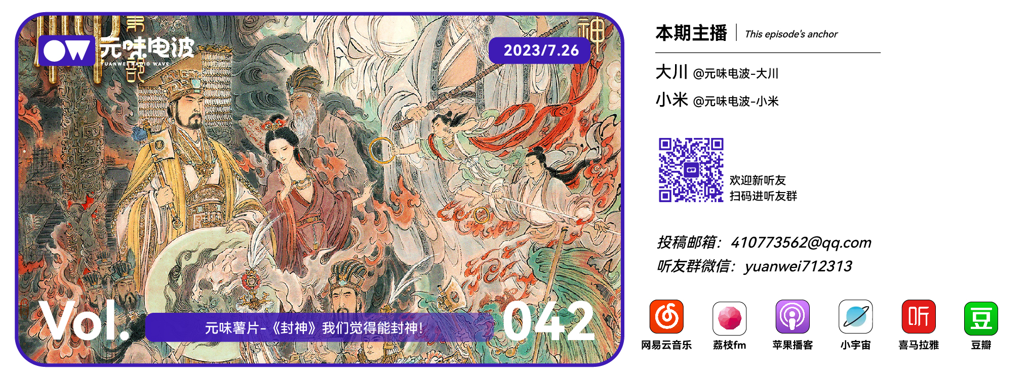 封神演义作为咱们家喻户晓的经典神仙打架小说已经被翻拍了很多版本了,但基本都是一地鸡毛,这次乌尔善导演的封神却带给了我们不一样的视听体验和改编,私以为这部《封神》应该是目前为止改编最好的封神题材的电影了,想知道为什么能让挑剔的大川和小米这么认可么?动动手指,来听我们聊聊~Ps:本期节目涉及大量电影剧透,请小伙伴们在看完电影以后再来食用哦~