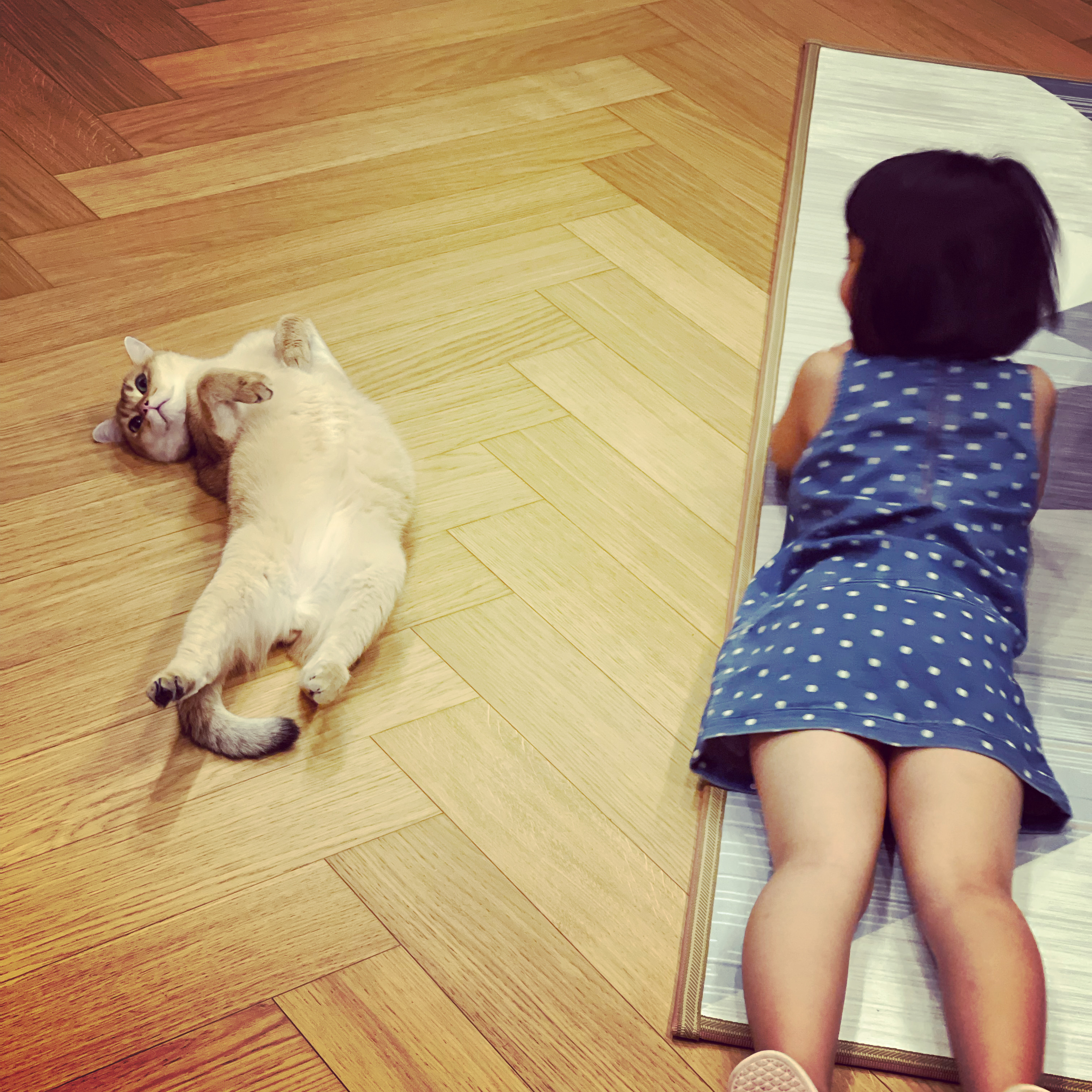 小孩子在与小动物的互动中偶尔也有掌握不好分寸的时候,看上去像是在伤害动物,甚至像是故意的。他们有时候只是在观察动物对于各种环境和行为的反应,比如摸摸它捏捏它,下手没轻没重也许会用小脚丫子踩一下它尾巴,力道没有掌握好感觉就像是在欺负它们。我有跟她分享过自己小时候因为不懂事剪过小麻雀的翅膀——天哪如今在一般人眼里我大概就是个恶魔了吧!当时我天真地以为没有翅膀它就不能飞了,就会乖乖在我家里喝水吃饭,我能养到它又白又胖!但也正因为曾经有这样一件令我至今仍非常后悔和内疚的事情深埋心中,我才能体会,什么心态和行为是内心的真邪恶,什么需要引导和科普。
