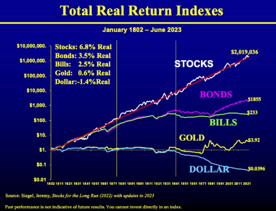 美国两百多年的各类资产的收益率,股票的真实收益远高于其他类别