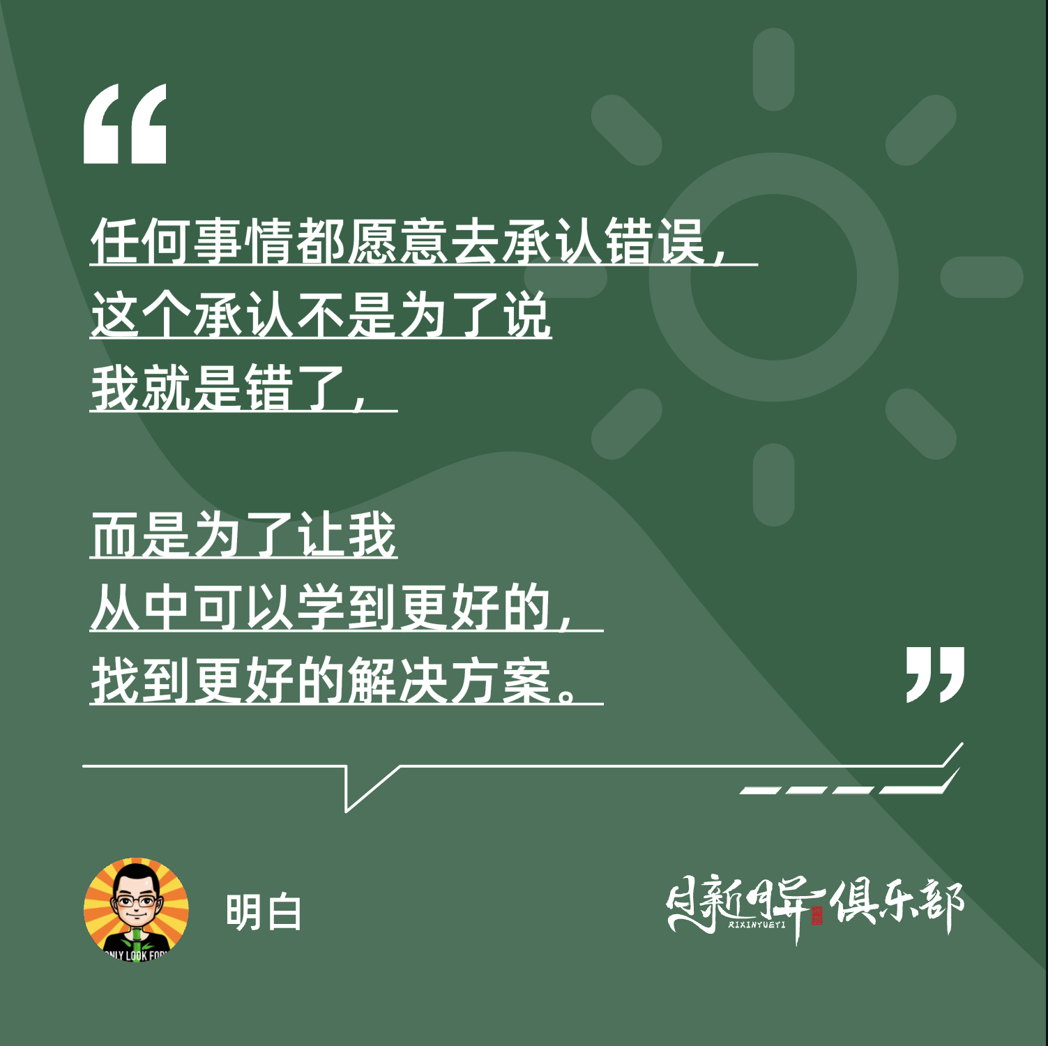 但如果你愿意克服这个,任何事情都愿意去承认错误,这个承认不在不是为了说我就是错了,而是为了让我从中可以学到更好的,找到更好的解决方案,那这件事情的过程中,我们自己就会获得一些很大的成长和安慰。