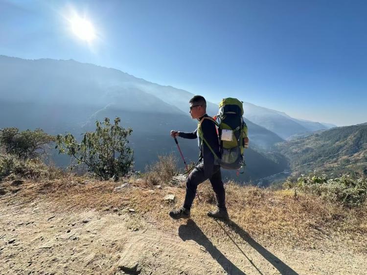 我有一个朋友叫王家超,最近他闭关了一段时间,说是去了趟尼泊尔,在珠峰边行走,没有手机信号。重装徒步超过220km,总爬升14000米,平均海拔超过5000米的时间有5天。