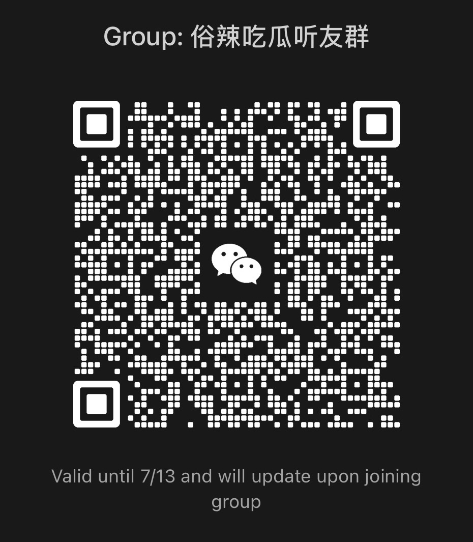 欢迎各位听友给我们的节目留言和我们互动,也请大家把本期内容分享给你的好友,让更多人喜爱《俗辣》,是我们最大的动力!更多互动可以关注起超小红薯:俗辣吃瓜起超,也可以扫描下方二维码,进群聊天!
