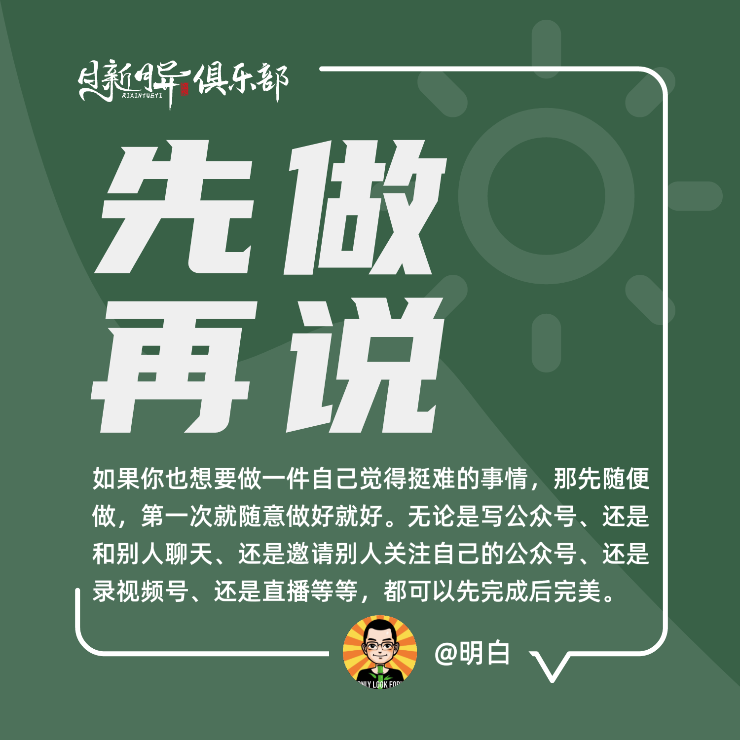OK以上就是分享的一个案例,如果你也想要做一件自己觉得挺难的事情,那随便做,第一次就随意做好就好,无论是写公众号,还是和别人聊天,还是邀请别人关注自己的公众号,还是录视频号,还是直播等等都可以先完成后完美。