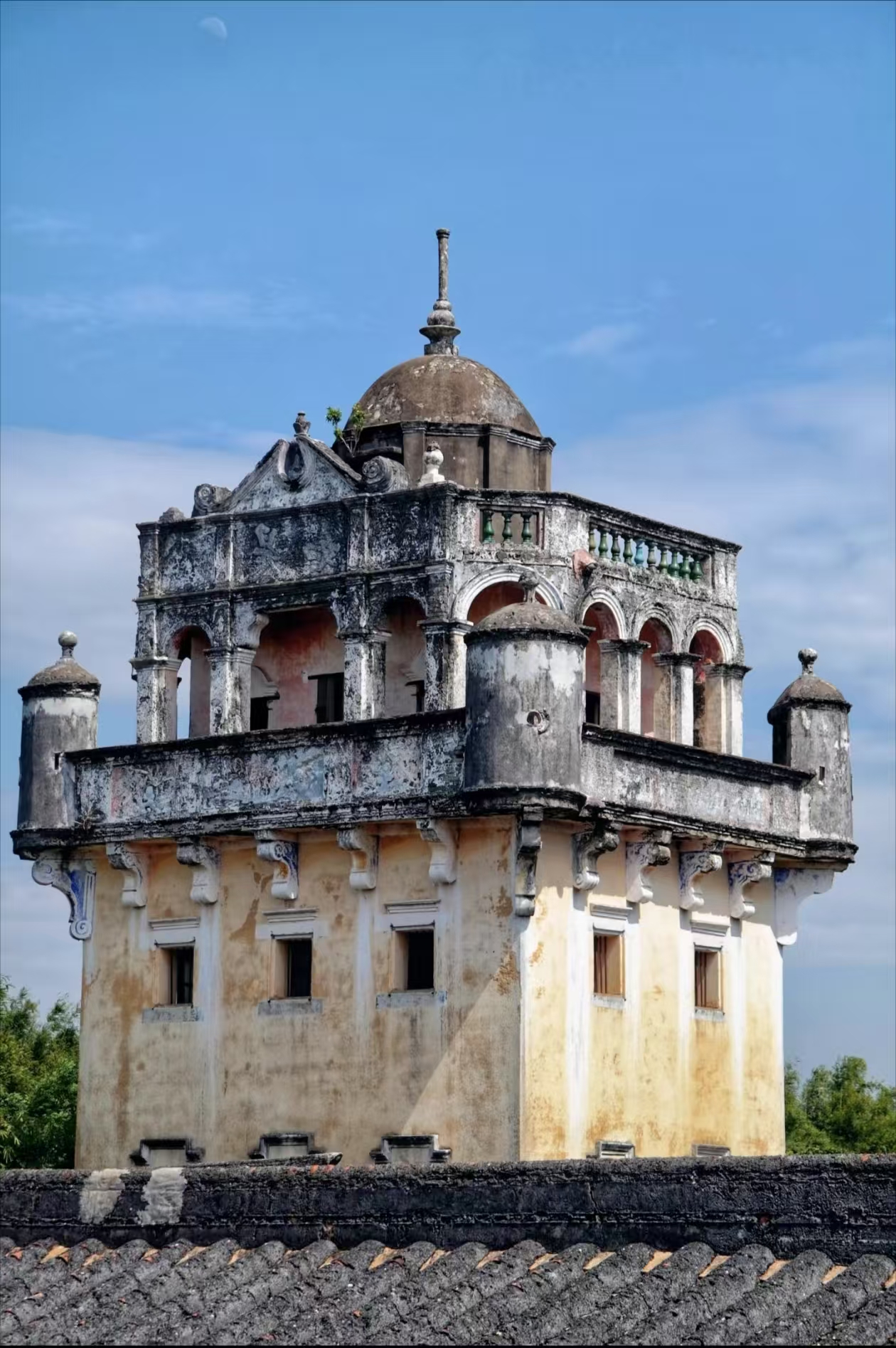 说到台山华侨,最绕不开的就是碉楼。在开平,我们走访了享誉全球的自力村、“岭南第一园林”的立园,和已然人去楼空的加拿大村。那些融合中西建筑风格的碉楼不仅仅是建筑奇观,更是每一个华人对“家”的眷恋,“衣锦不还乡,如锦衣夜行”。尤爱立园,谢维立的审美是超越时代的,它不仅保留对传统文化的继承,更体现了全球视野下的东西方融合。从花梨床架的雕花和亭台楼阁,再到意大利进口的水磨石和后花园的伊斯兰风格鸟笼,每个细节都令人击节赞叹。