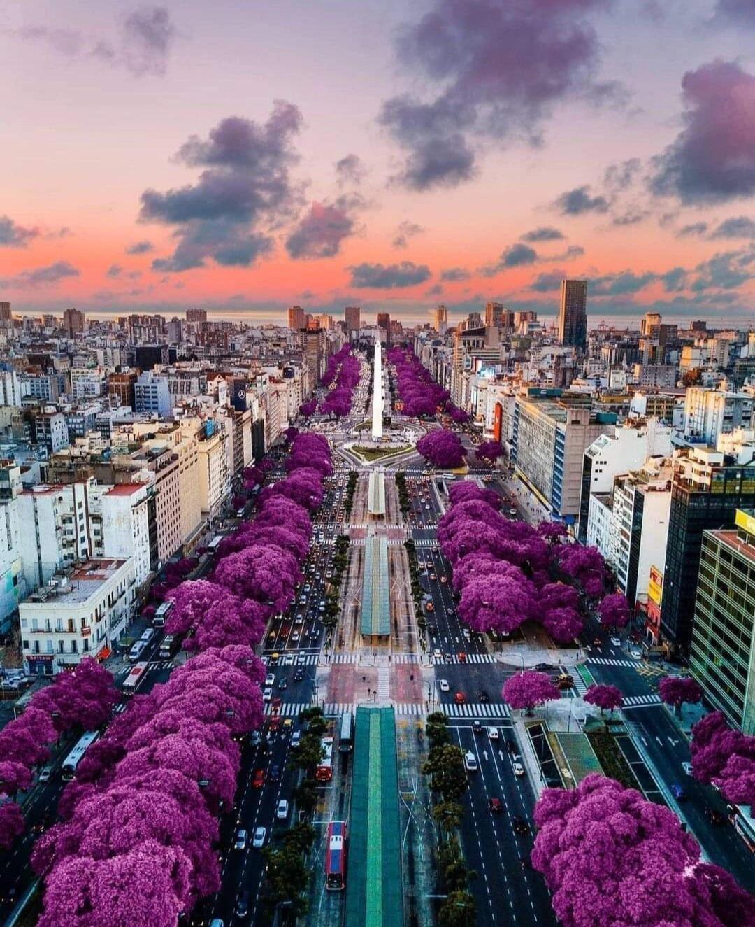 布宜诺斯艾利斯开满蓝花楹的七月九日大道