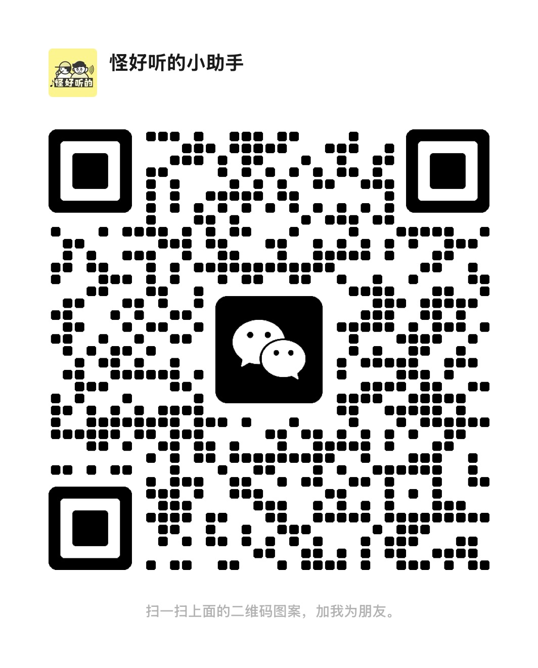 加入听友群方式:扫描下方微信二维码,小助手邀请入群:或直接添加“怪好听的小助手”微信号:GHTD13259969684也可被邀请入群。
