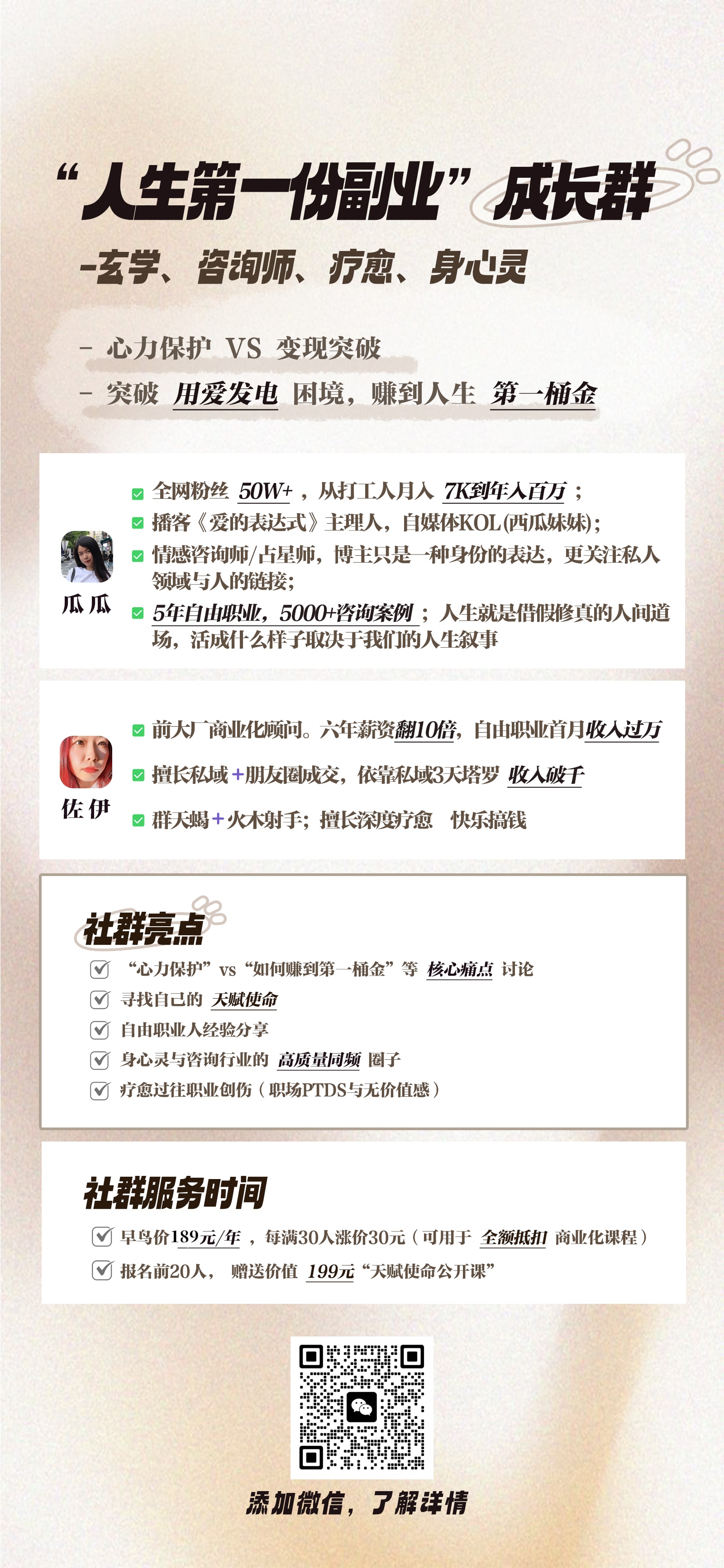 2.六年薪资翻10倍,自由职业首月收入过万,擅长私域+朋友圈成交,依靠私域3天塔罗 收人破千