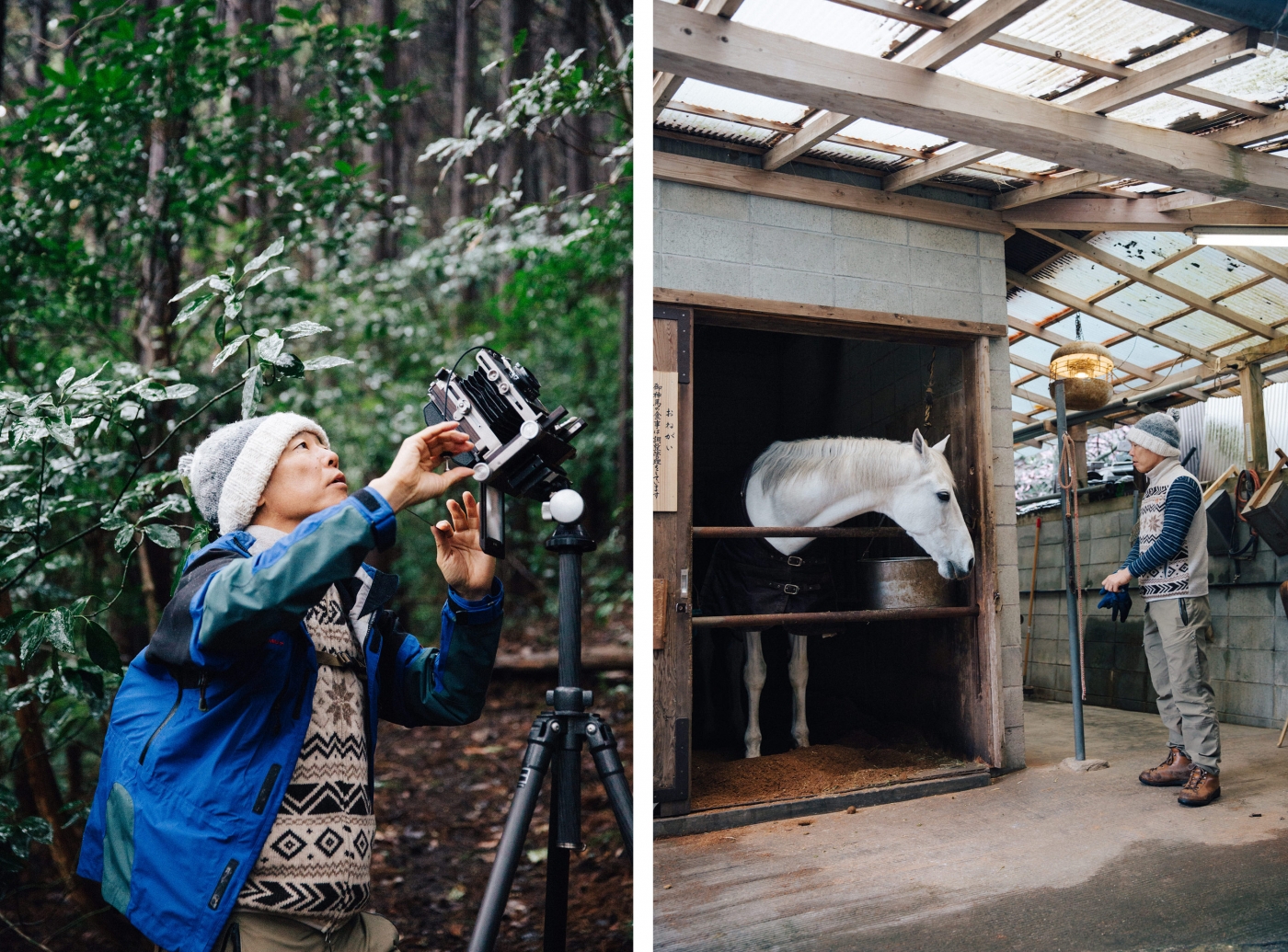 Takashi Homma和他的 大画幅相机一起的各种工作照 上一张是拍摄美国摄影师Alec soth 的时候的场景