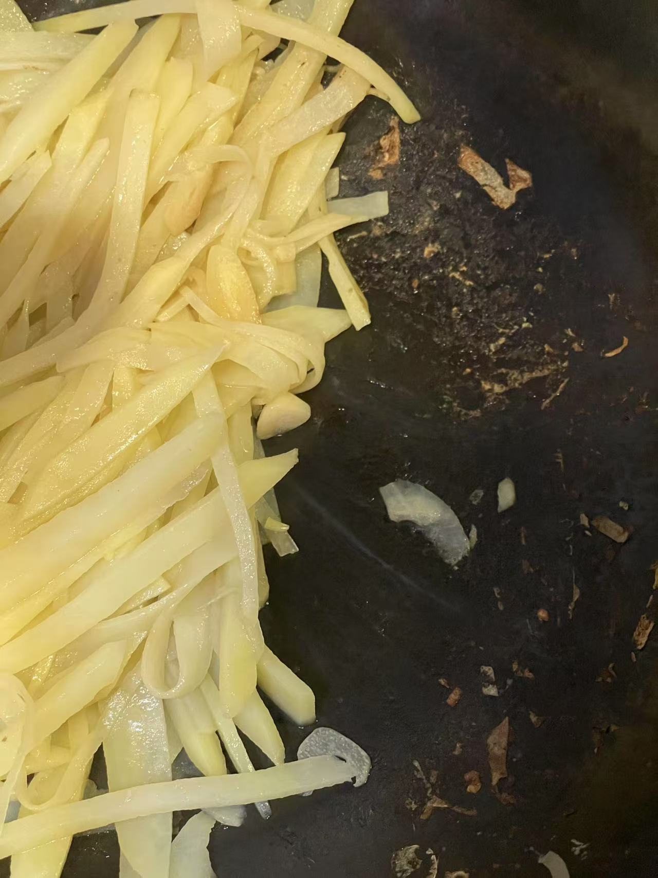 炒土豆丝微微糊锅的状态