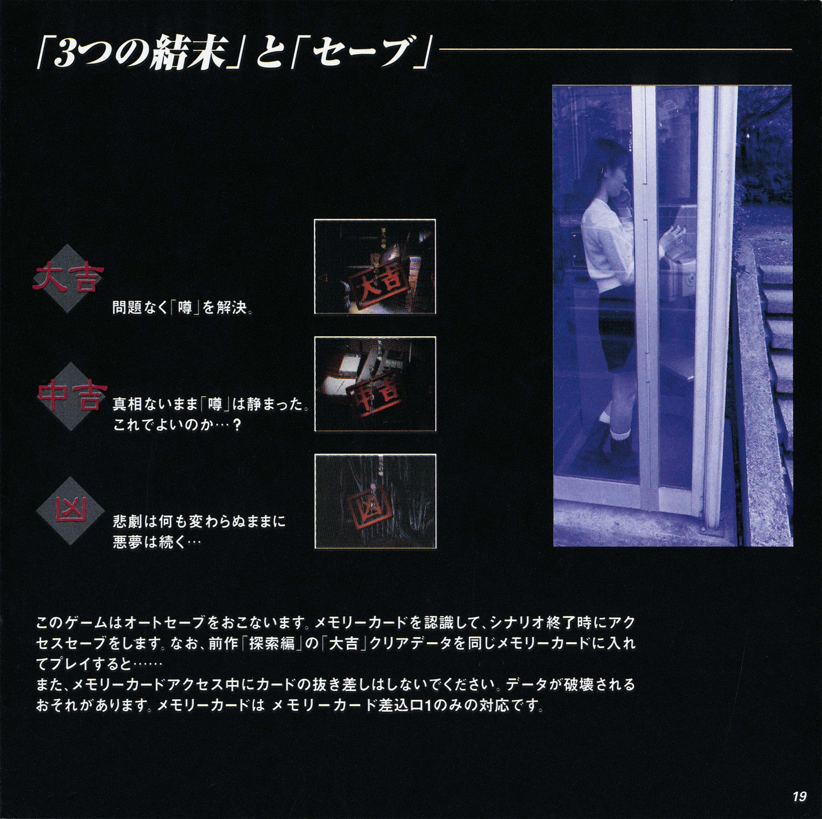 - 《黄昏症候群~究明编~》:发售于 1996 年 7 月 19 日,平台为 PS1。
