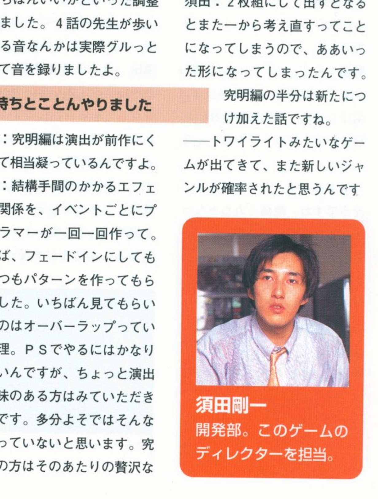 - 《月光症候群》,系列衍生作,制作人须田刚一,发售于1997年,平台为 PS1。