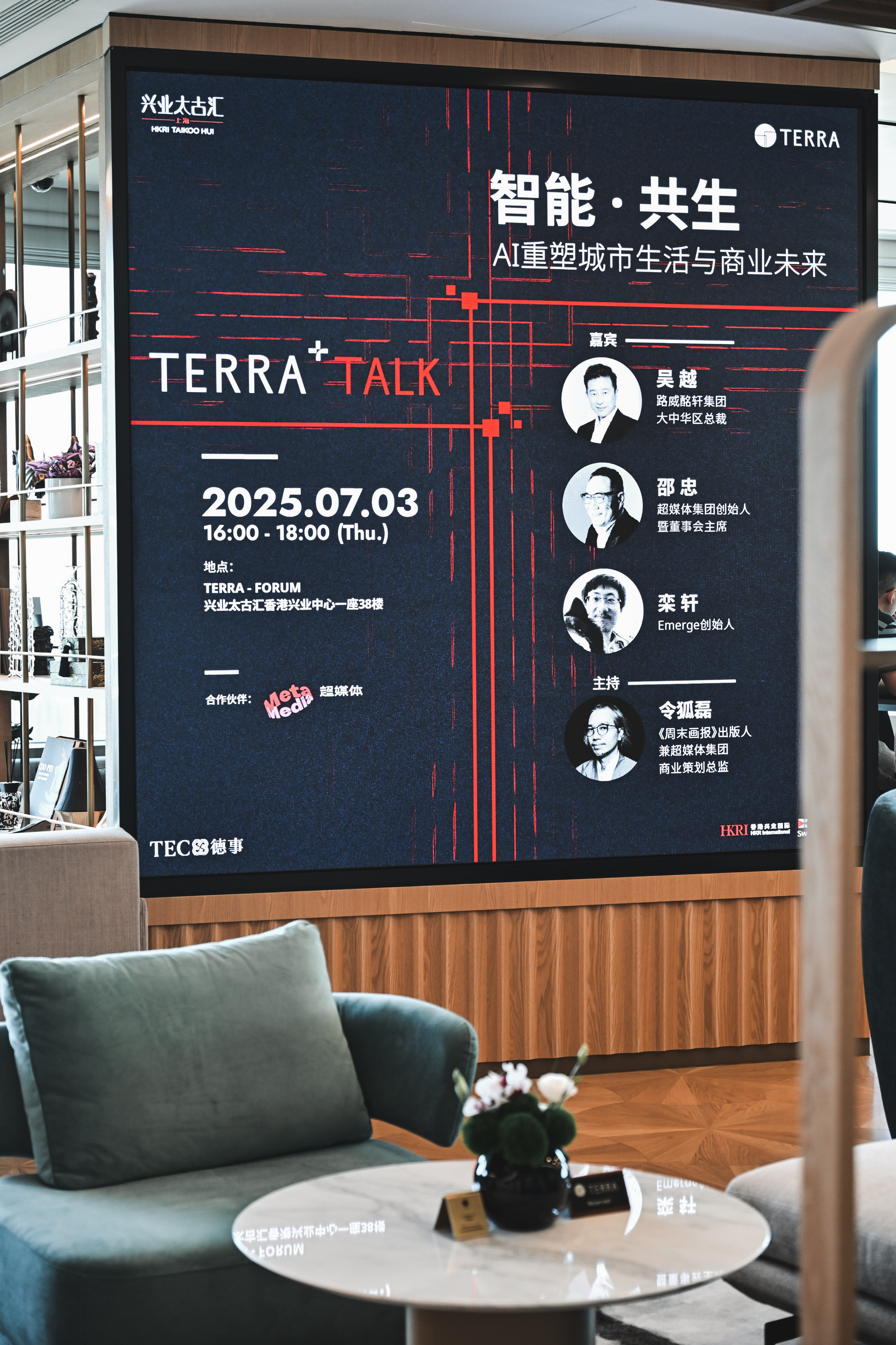 在上周,TERRA+ TALK第一期主题为“智能共生:AI重塑城市生活与商业未来”分享论坛成功召开。《周末画报》出版人、超媒体集团商业策划总监令狐磊先生担任主持,来自路威酩轩集团⼤中华区总吴越先生,资深出版⼈、专栏作家、超媒体控股董事会主席、CEO兼⾸席内容官邵忠先生和Emerge创始人栾轩先生作为嘉宾,大家在上海最热门的地标、讨论最热门的AI与城市的话题,真知灼见引发全场共鸣。分享论坛中最让人印象深刻的是,嘉宾们不约而同的给出同一个观点:技术演进是不可逆转之进程,人工智能必将突破人类既往认知的边界,然而正因如此,人类的情感和想象与城市历史文化将变成未来世界的核心价值。