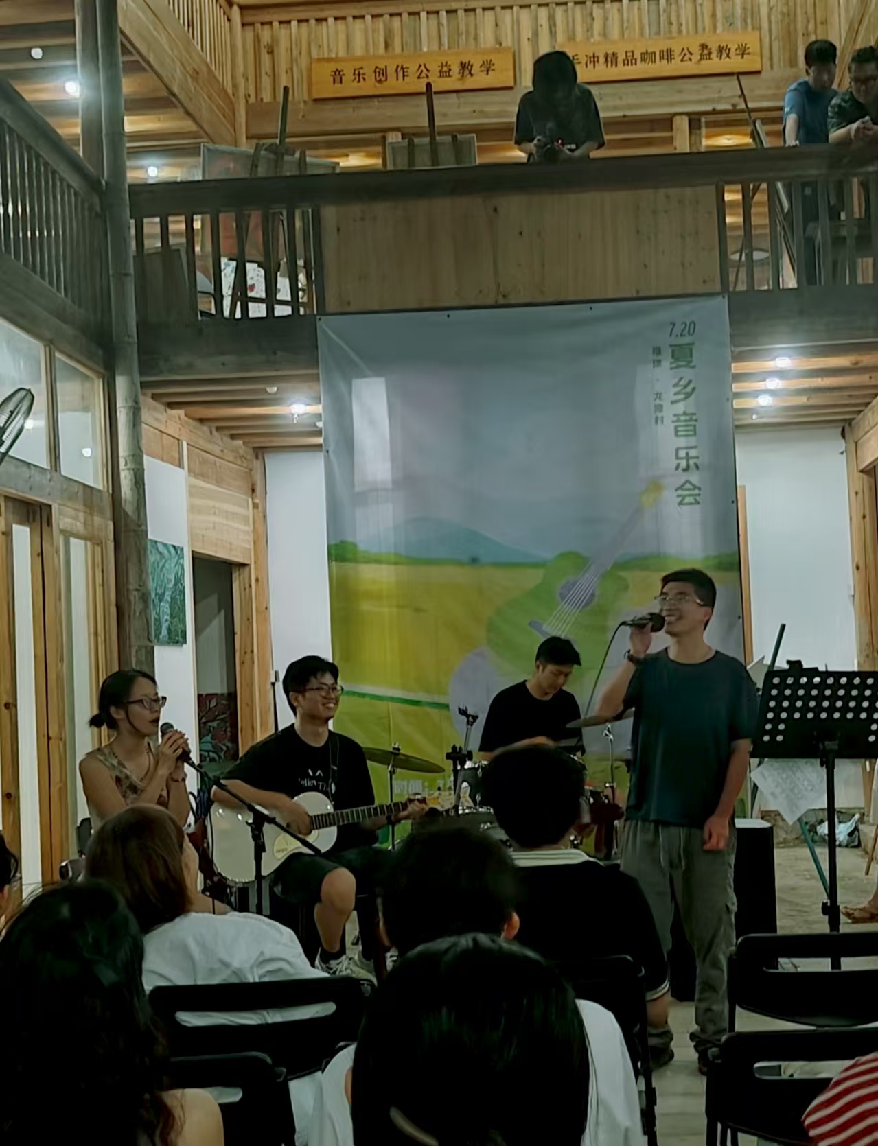 福建龙潭村公益画室举行的“夏乡音乐会”,钢字在唱“完蛋了!”