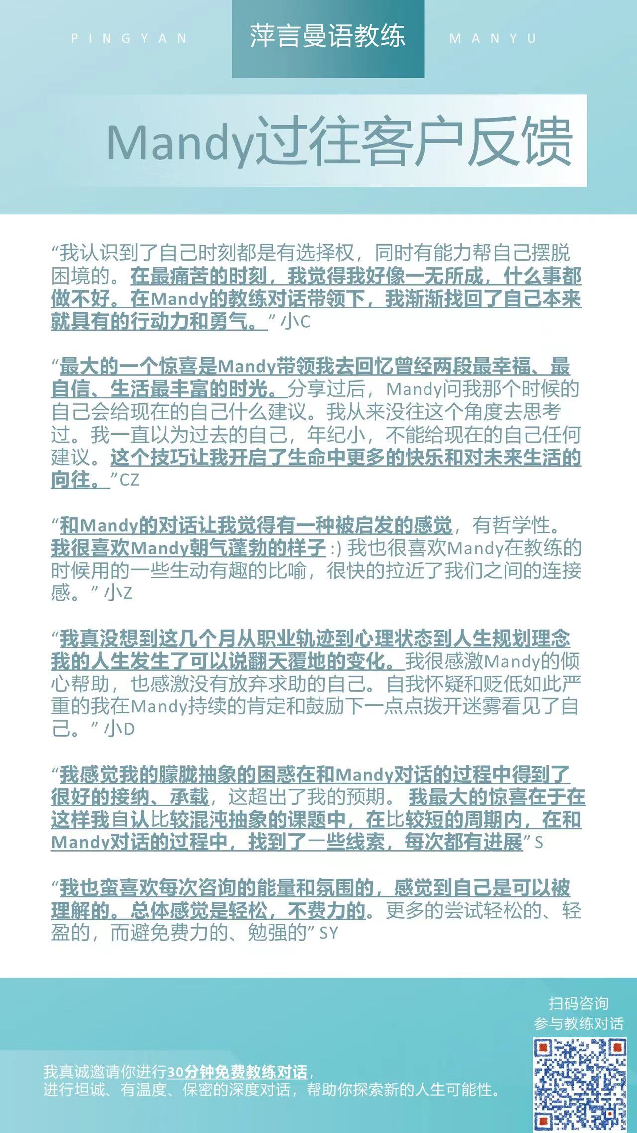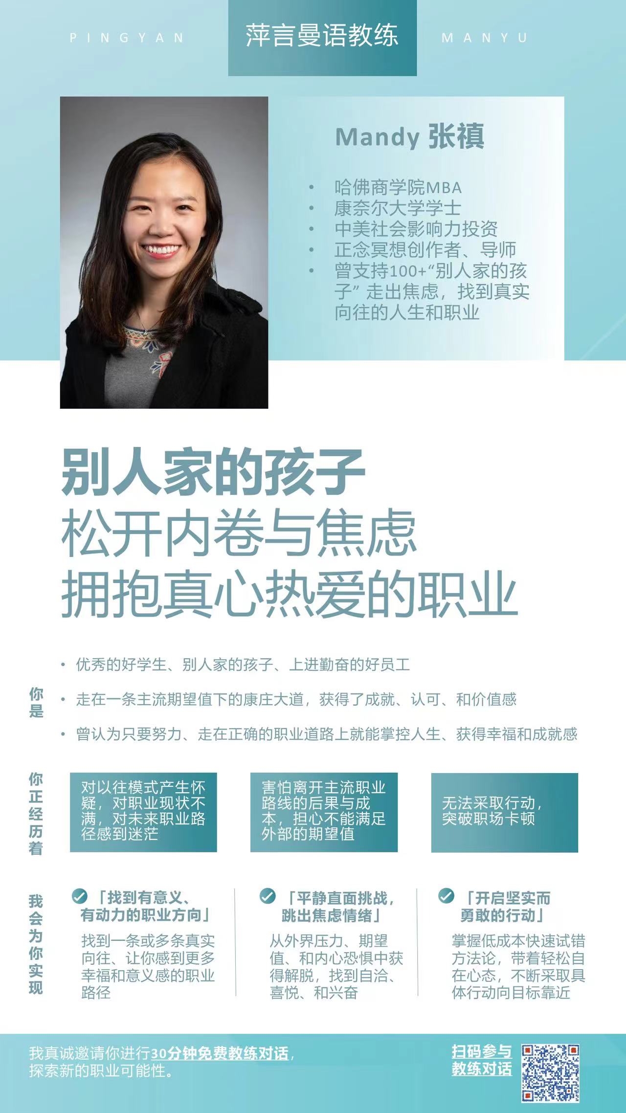 好奇通过教练对话探索真心向往的职业方向欢迎添加Mandy微信【微信号:zz68zhen】,免费约一次教练对话。