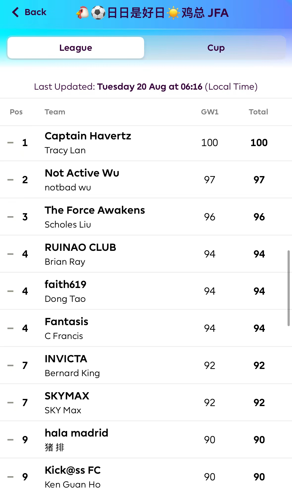 现在就登录英超官网fantasy.premierleague.com注册球队,挑选阵容,输入邀请码【gedi45】加入 🐔⚽️日日是好日 JIKE Fantasy Association
