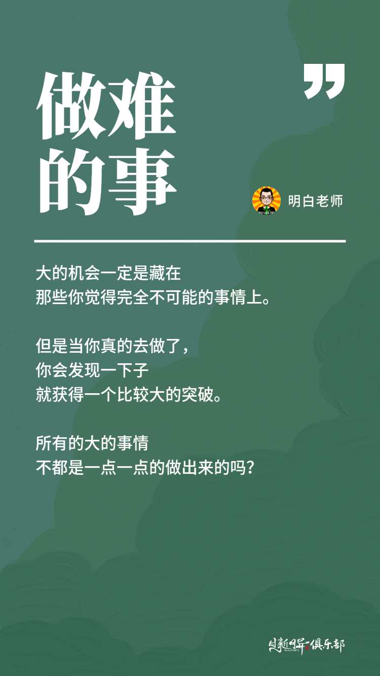我这也是人的一个普遍的思维,我先把自己能做好的事情,然后再去做那件别人给我提建议的事情。但这种时候有时候会让自己错失掉很多的机会或者说机遇,直到现在,其实我有时候也会出现这样的一些状况。