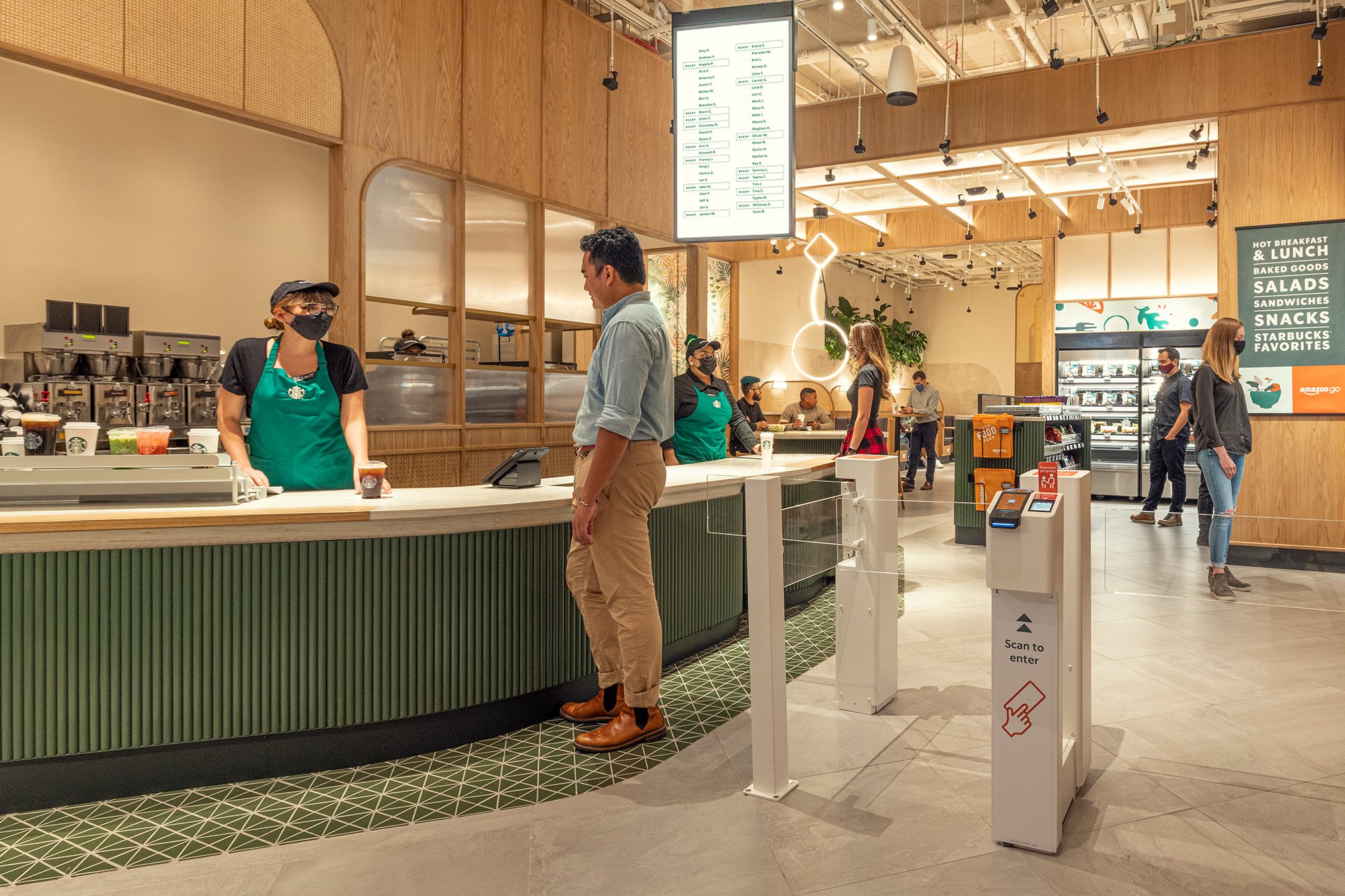 CREDIT: COURTESY OF STARBUCKS X AMAZON GO骅:就像我们上一期有关亚马逊与巴诺书店的podcast节目里提到的,科学技术再发达,也无法代替人与人之间的那种交流。当咖啡店失去了浓浓咖啡味道的时候,它的魅力也就失去了一大半。那么Poy,你对星巴克的转型,有何看法呢?