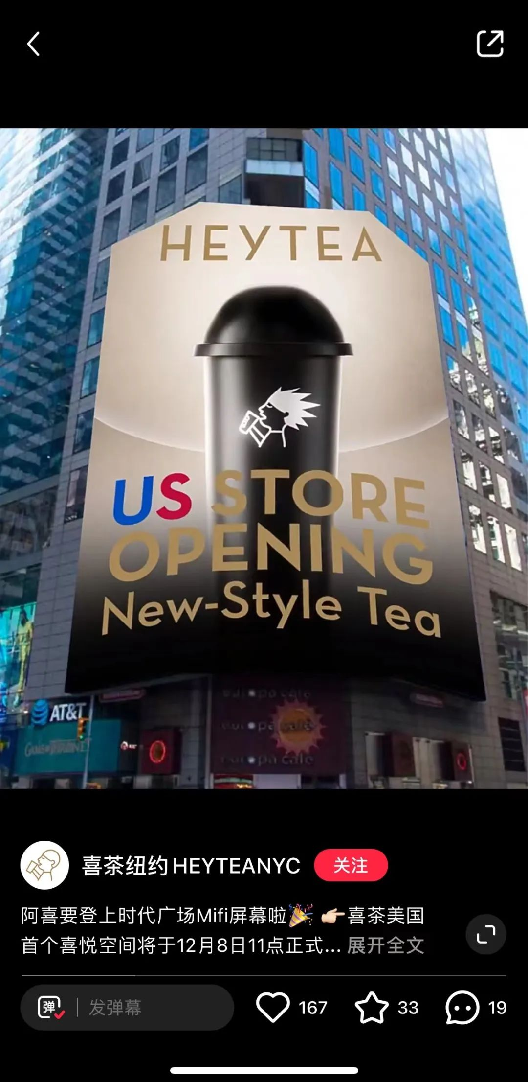 2 月 23 日,纽约时代广场的喜茶海外首家 “LAB 店” 前人声鼎沸,排起的长龙甚至吸引了变形金刚人偶扮演者驻足观望。而这并非中国新茶饮在欧美的首次亮相,此前茶百道已在西班牙巴塞罗那开设首家欧洲门店,喜茶、茉莉奶白、霸王茶姬、奈雪的茶等品牌也纷纷在欧美市场布局。