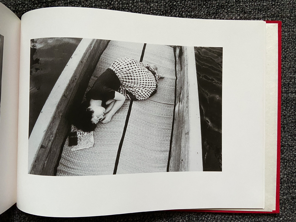 1970年感伤之旅阳子躺在船上的照片像回到了母体,蜷缩着