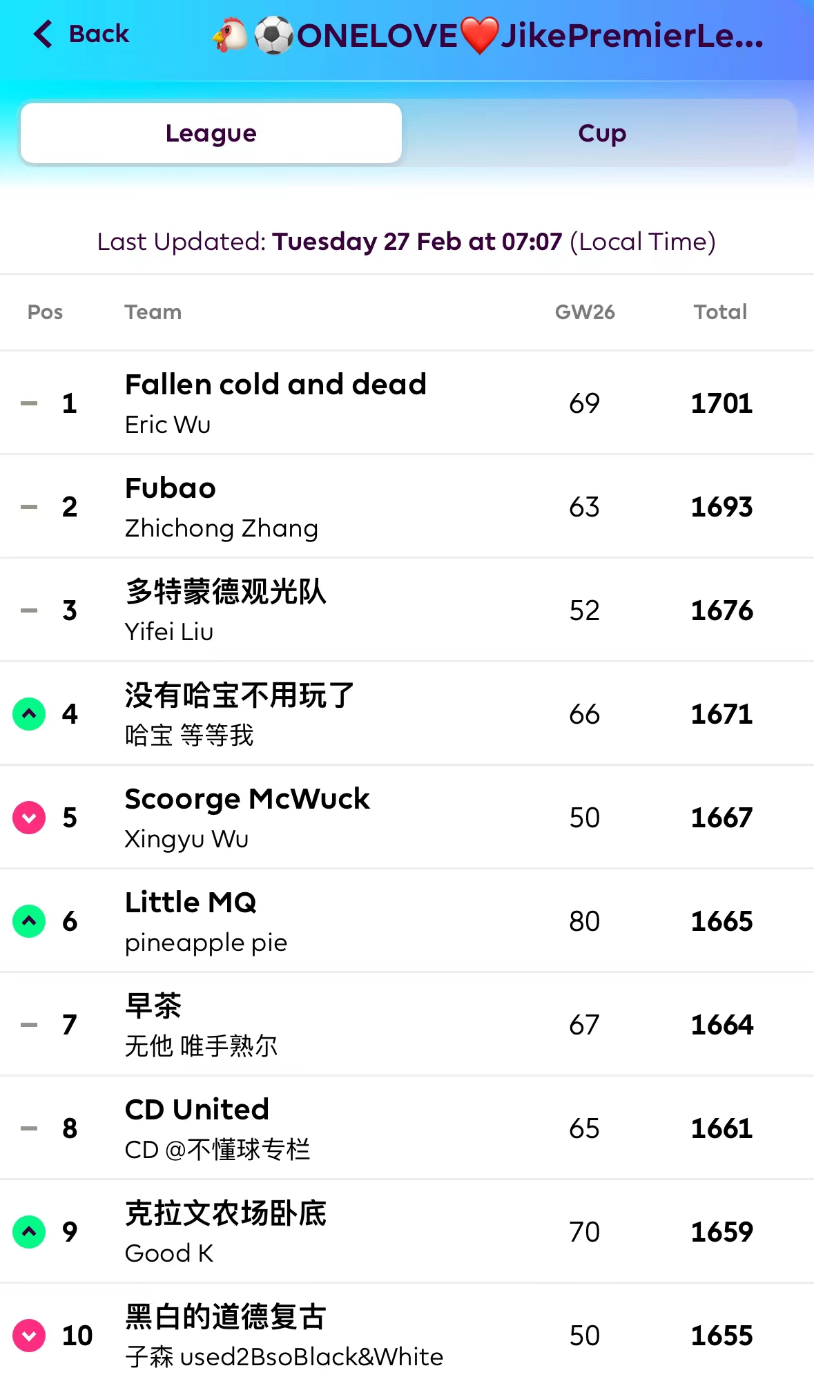 现在就登录英超官网fantasy.premierleague.com注册球队,挑选阵容,输入邀请码【y0dd32】加入 🐔⚽️ONELOVE❤️JikePremierLeague鸡超联赛