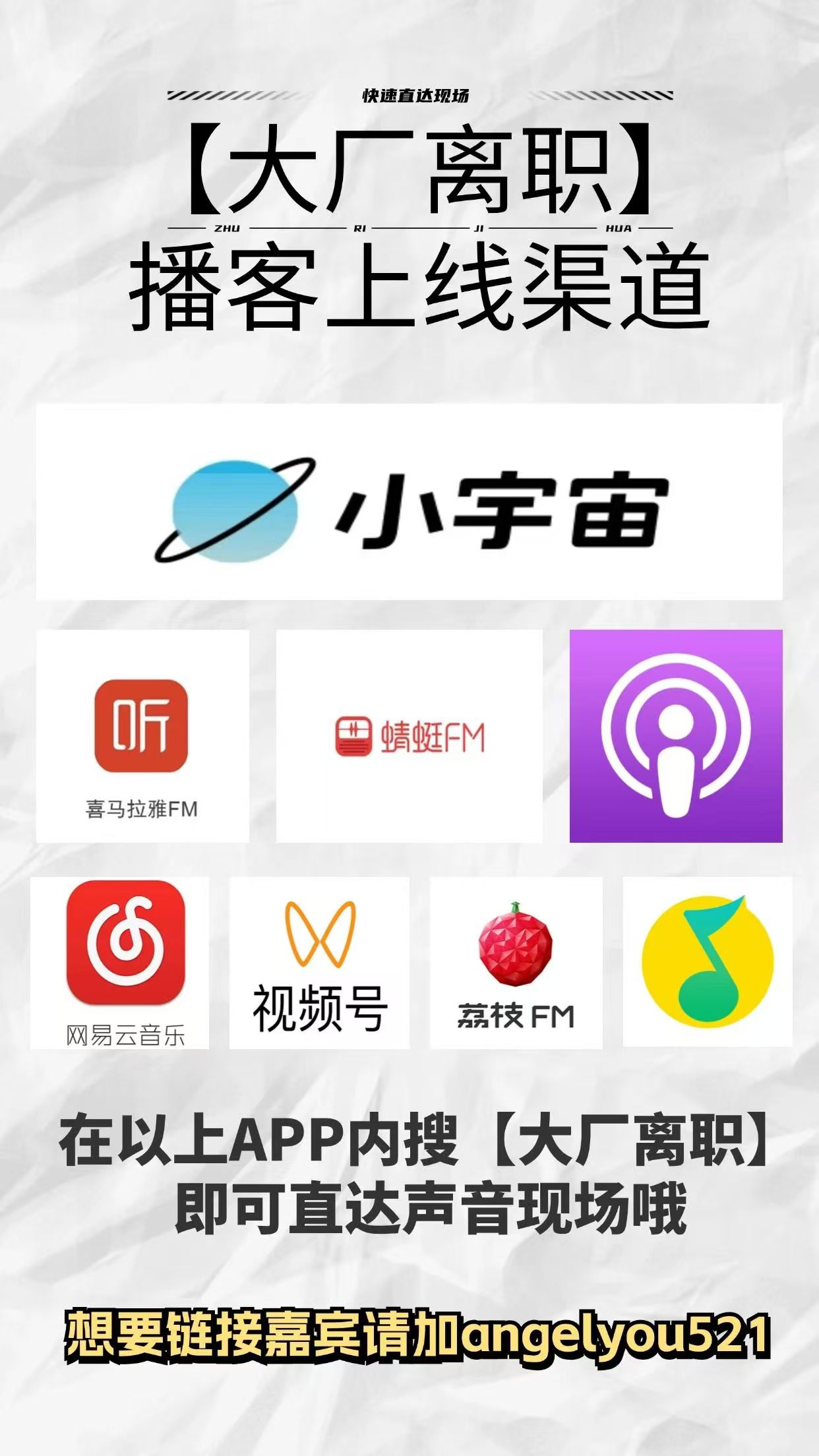 你还可以在喜马拉雅、蜻蜓FM、苹果播客等APP搜索【大厂离职】收听我们的播客。