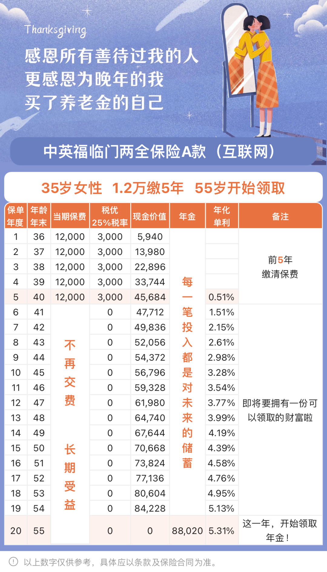 分享一款精心挑选的养老产品:🔹中英人寿福临门两全