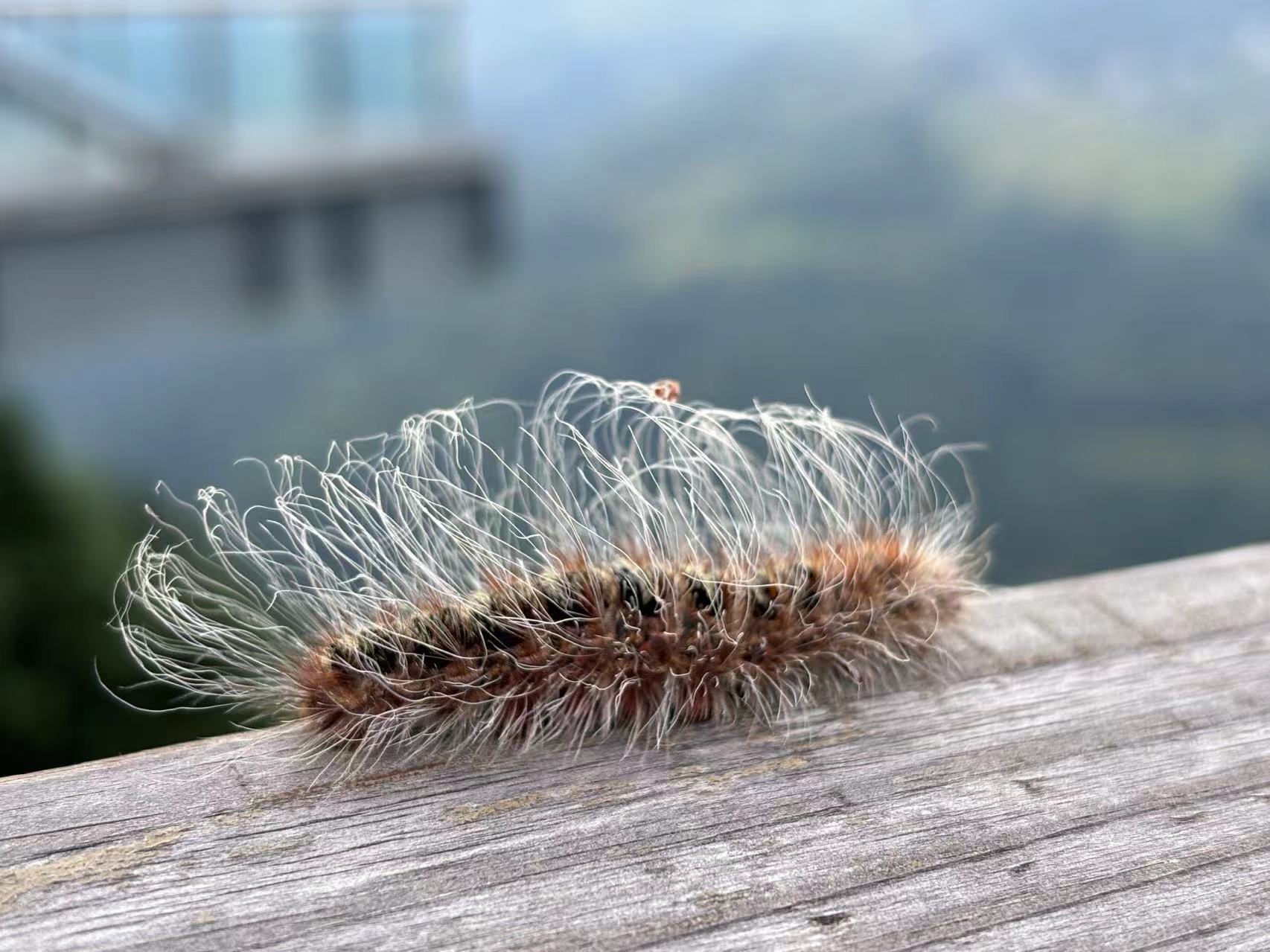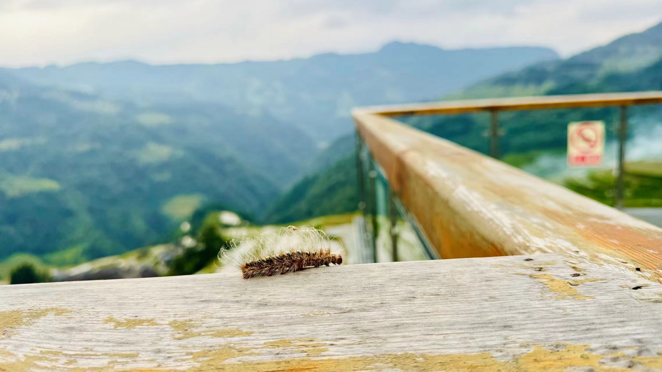 观景台的扶手上一只神奇的毛毛的毛毛虫(夏天还拍了张贴脸图,放在了最后一张,不想看到大虫子的请注意哈)》》》》