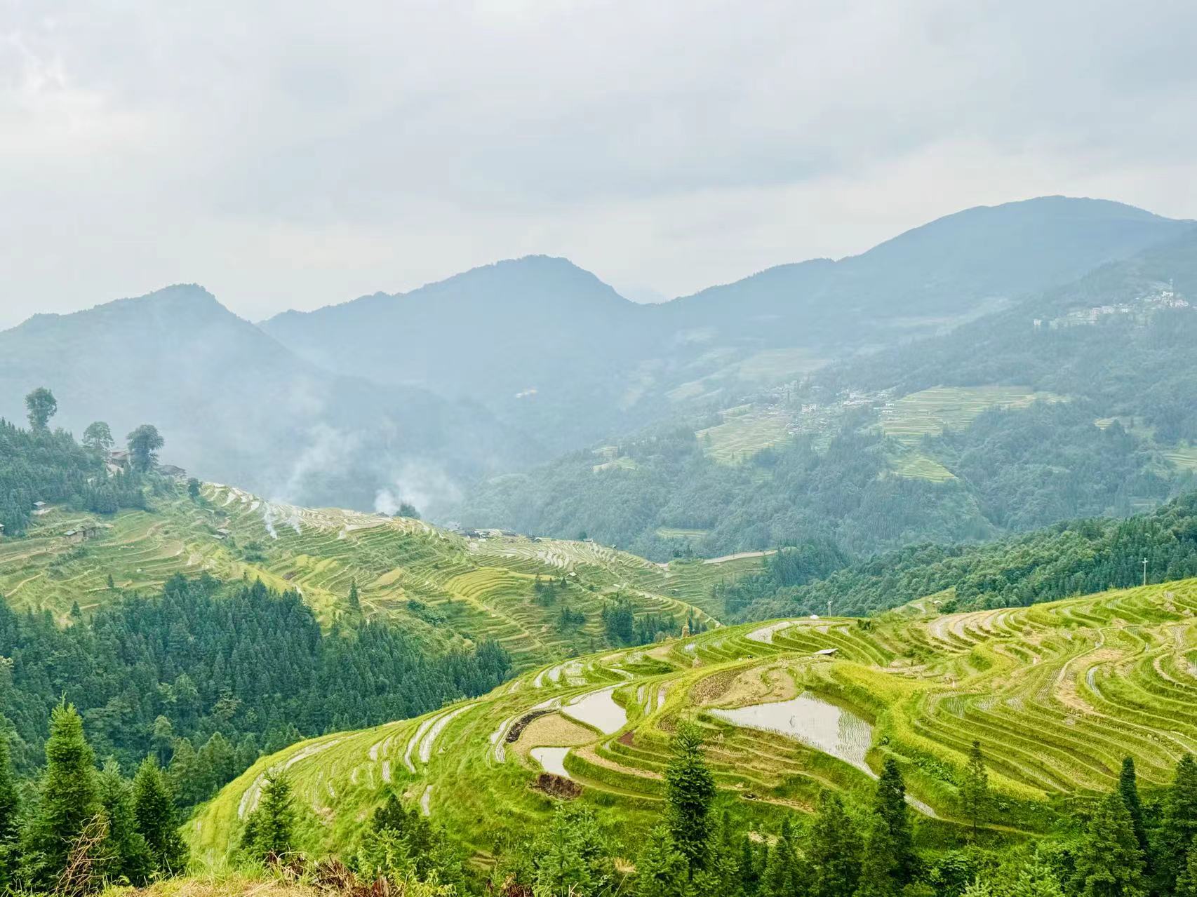 第一天的艳阳高照,第二天的烟雨蒙蒙,这个时节的梯田也有不一样的美,大概就是美人哪怕再潦草也是美的吧!