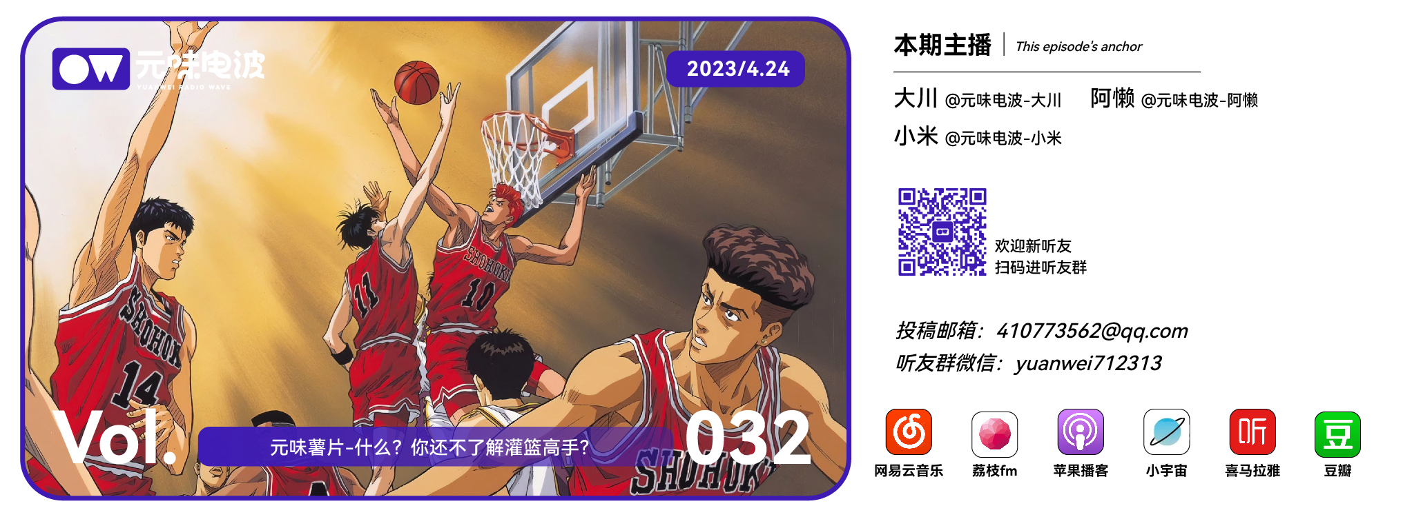 时隔二十七年与《灌篮高手》重逢,当年高喊“教练我想打篮球”少年们早已长大成人,但称霸全国的记忆不会褪色,那是青春、梦想、热爱,关于篮球少年,也关于我们自己。本期元味电波为大家带来,《灌篮高手》大电影的内容补全录,为不了解《灌篮高手》的朋友们补全并解析湘北与山王的这场世纪之战。朋友们,来跟随大川,小米和阿懒一起走进湘北和山王决战的观众席吧!(本期涉及严重剧透,建议听众们观影后食用。)