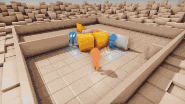 在强化学习算法下,小红和小蓝这些AI小人在虚拟世界里面不停玩游戏,一开始的小蓝只会躲,在日夜重复玩了上万轮之后,它们开始发现策略、学会协作、甚至反制。