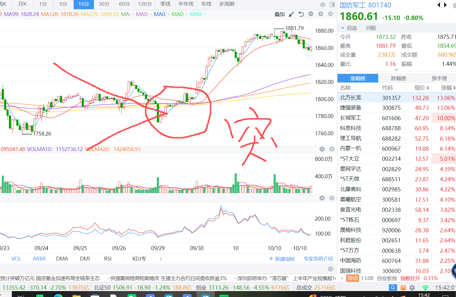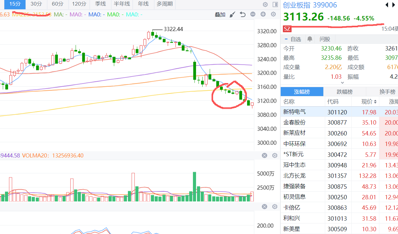 我中午说的关键点其实就是这里 创业板的15分钟 凭良心说啊 也没说错对吧 哈哈哈哈 是非常有问题啊