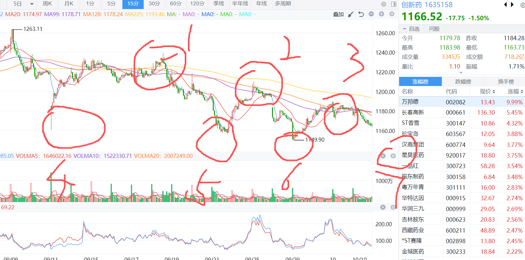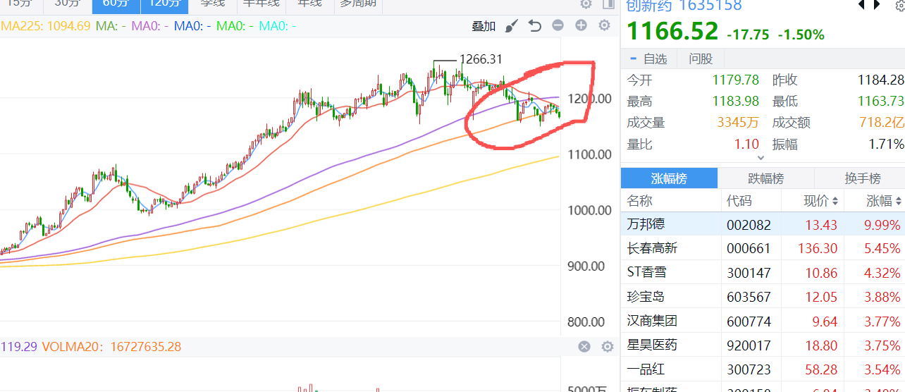 创新药 要一分为二的看 15分钟短线确实是一个天下向下的压力走法 但其实底部已经有止跌的可能了
