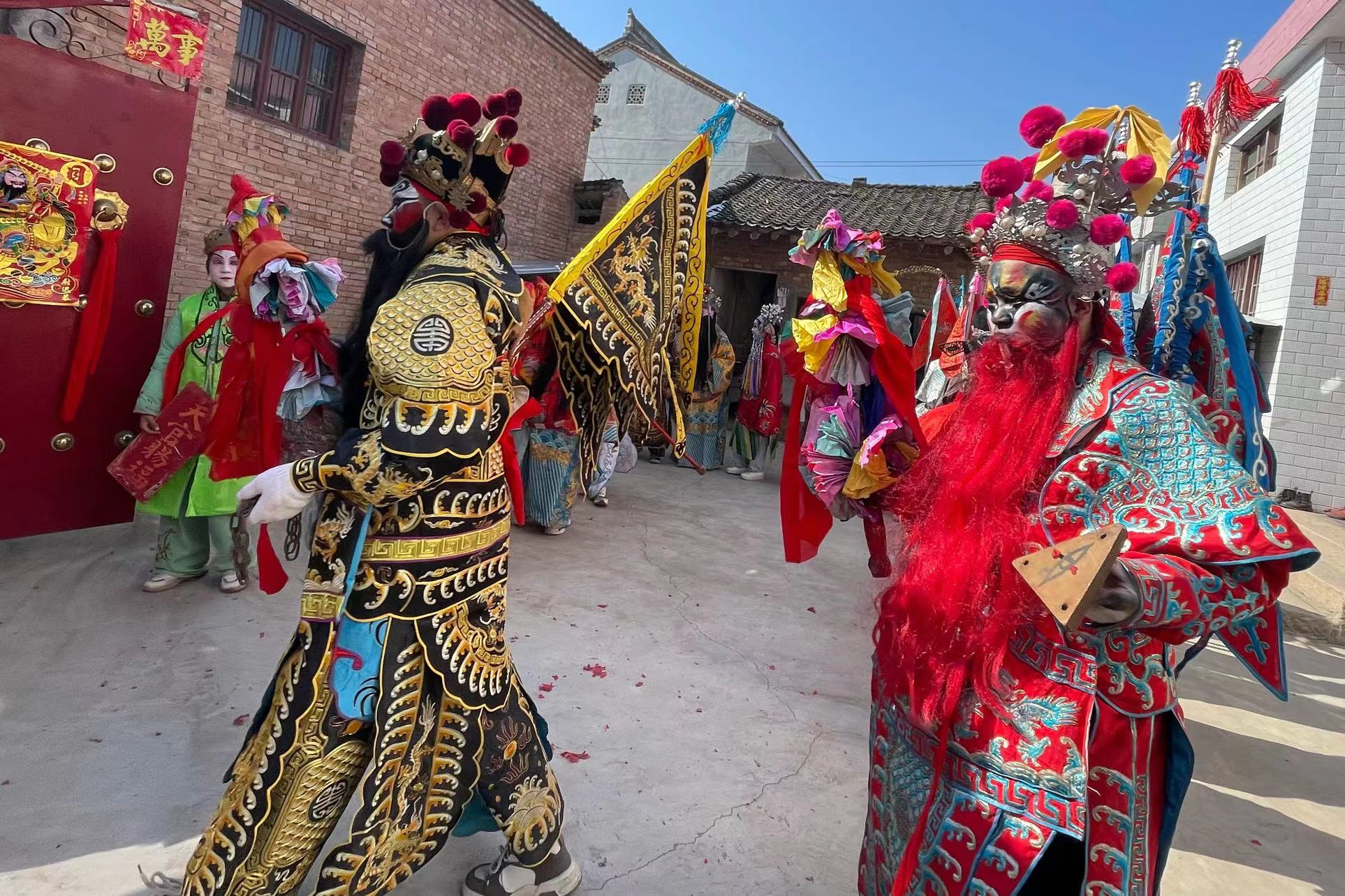 【米粒:老家的民俗“接社火”,放鞭炮迎接社火来家里转一圈会带来好运。】