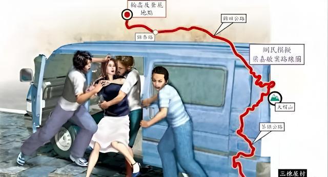 三名男子将梁嘉敏塞入蓝色箱货车的示意图