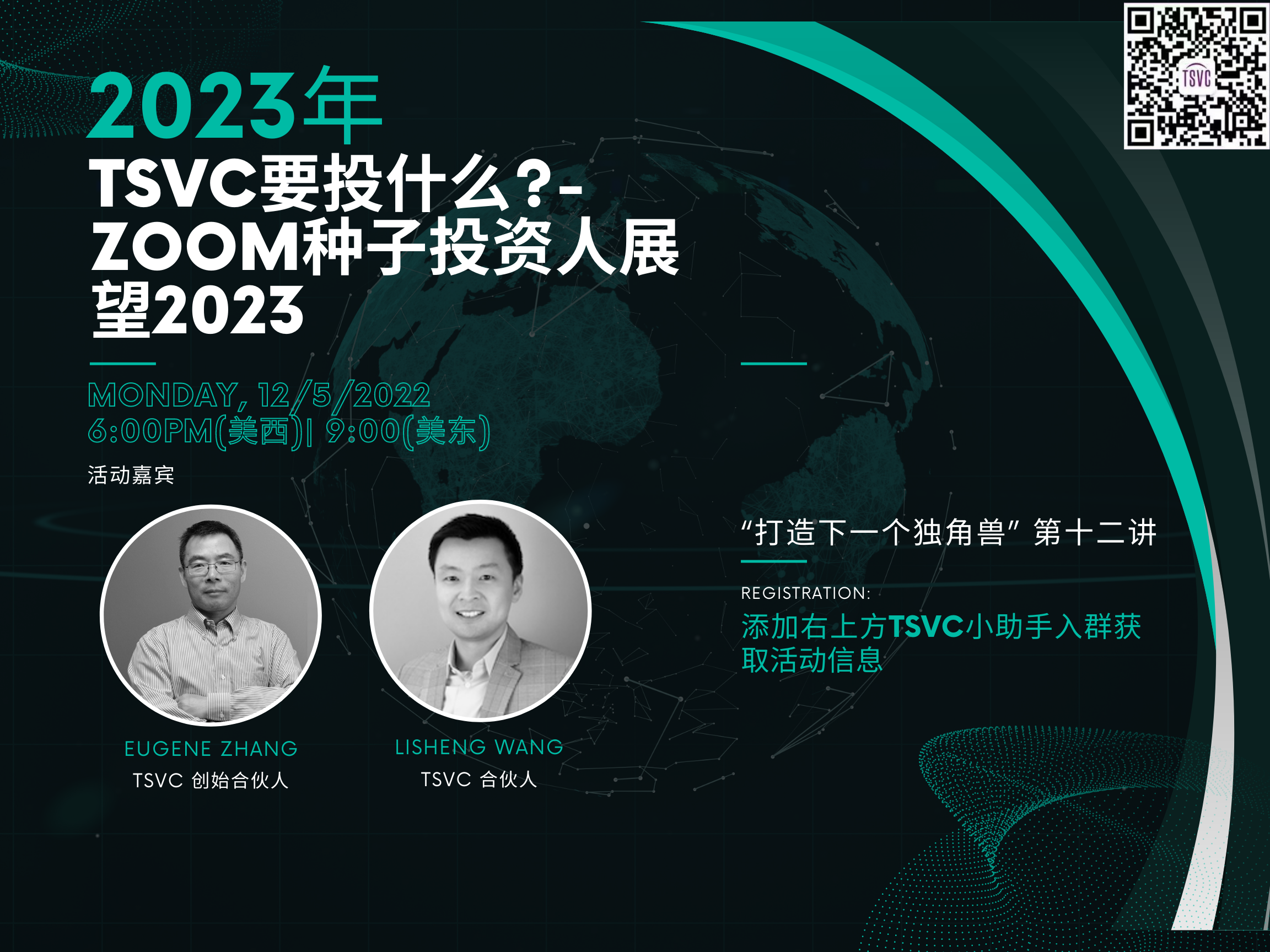 TSVC举办了《打造下一个独角兽》讲座第十二讲,创始合伙人张于庆先生和合伙人王黎晟先生针对大家困惑的问题做线上分享,一起展望2023年。