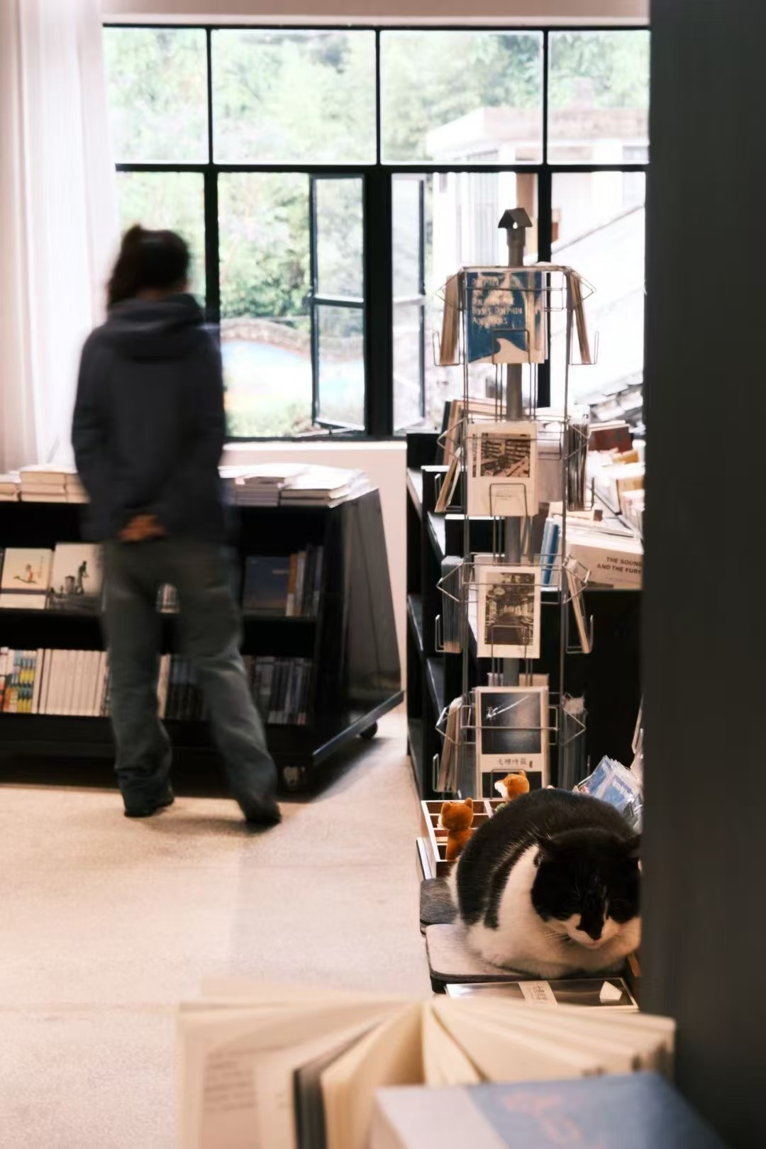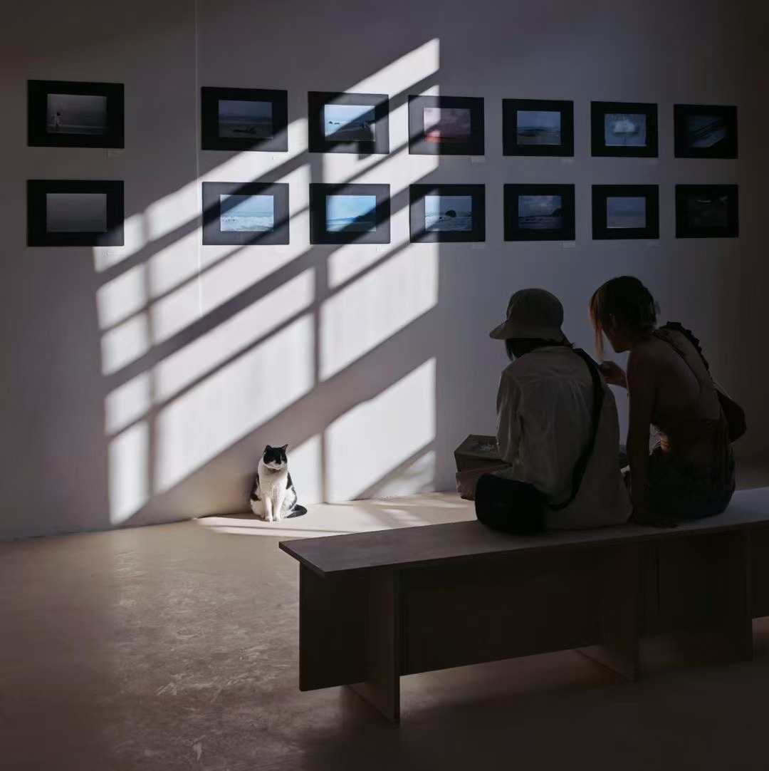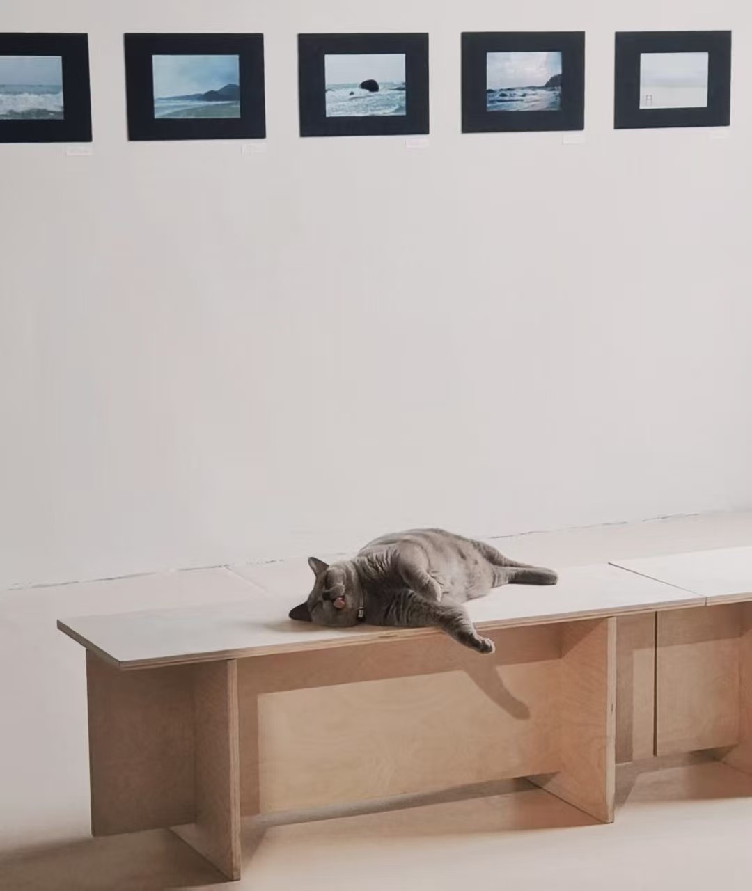 我没有告诉小白,播客的头像其实就是书店的小猫在看展。这还是2023年的下半年。那会儿书店还没有改造。