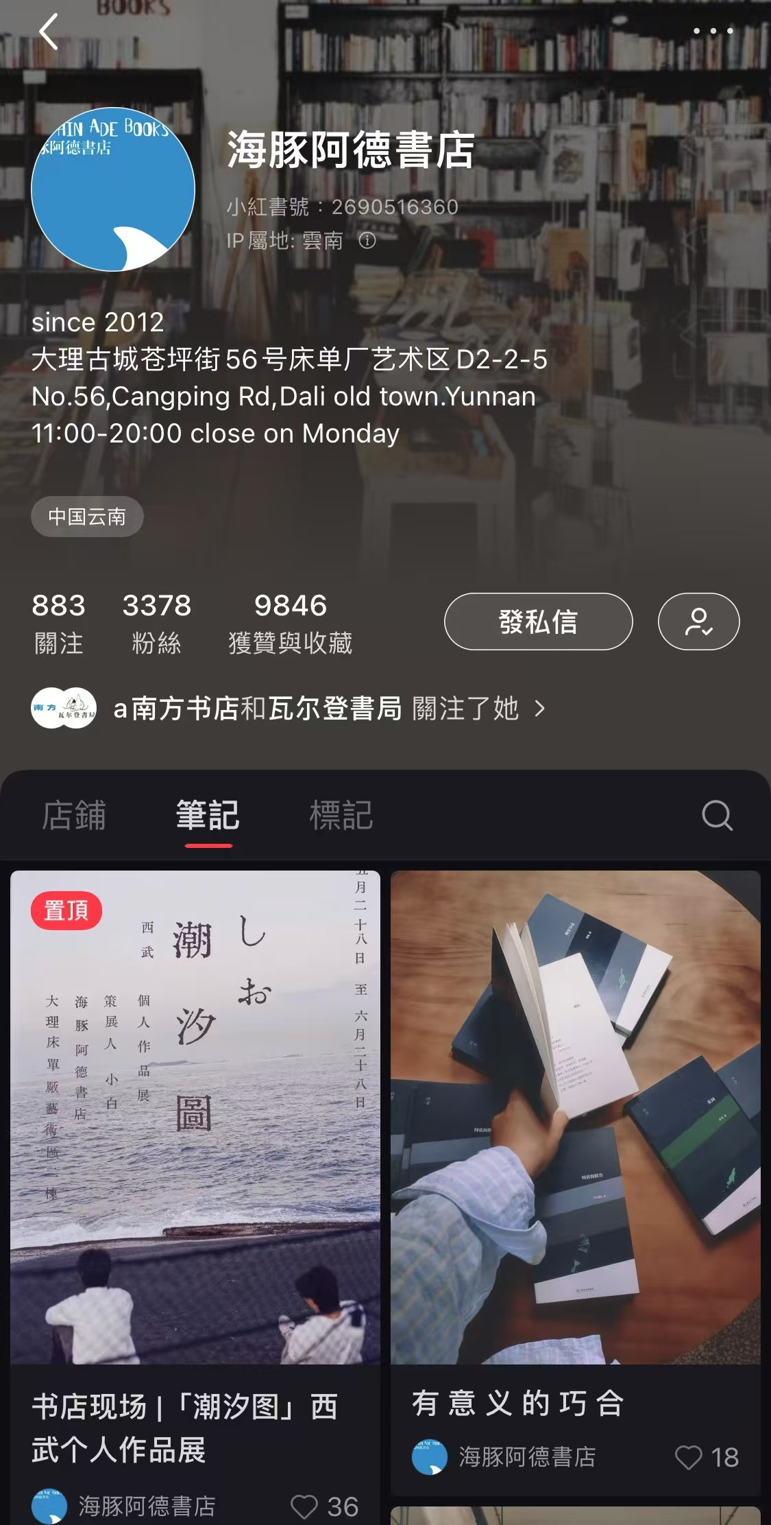 欢迎关注海豚阿德书店的小红书!照片都很好看,但是书店更好看!!!每一个去大理的人不去海豚阿德我都会伤心的!!!