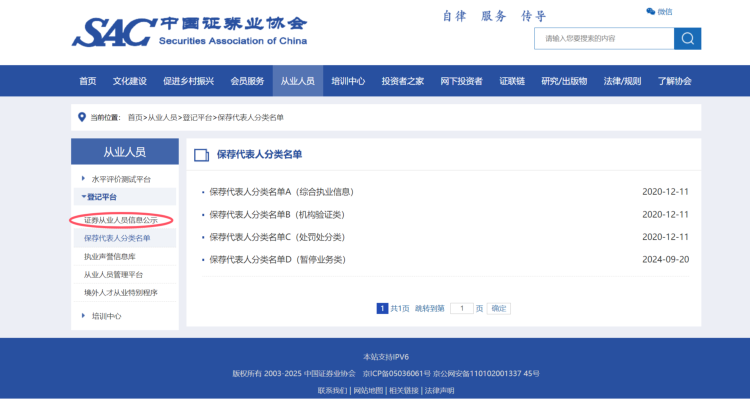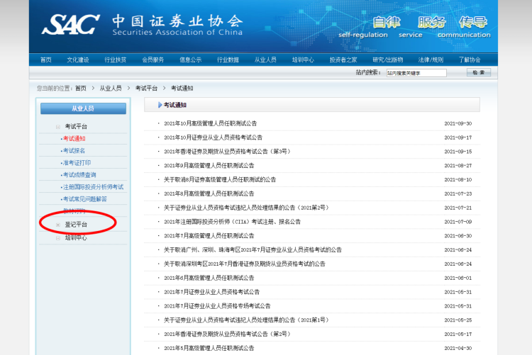 进入官网首页后你会在顶部看到“从业人员”的选项,点击它进入下一个页面。然后在新页面左边会看到“登记平台”选项,点击它再进入下个页面,之后继续找到“证券从业人员信息公示”选项,点开之后就会看到查询方式。你可以根据对方提供的牌照进行查询,查机构的名称或编号都可以。如果能查到,最起码能证明对方做的是合法业务,如果查不到,说明对方骗子的身份已被落实。