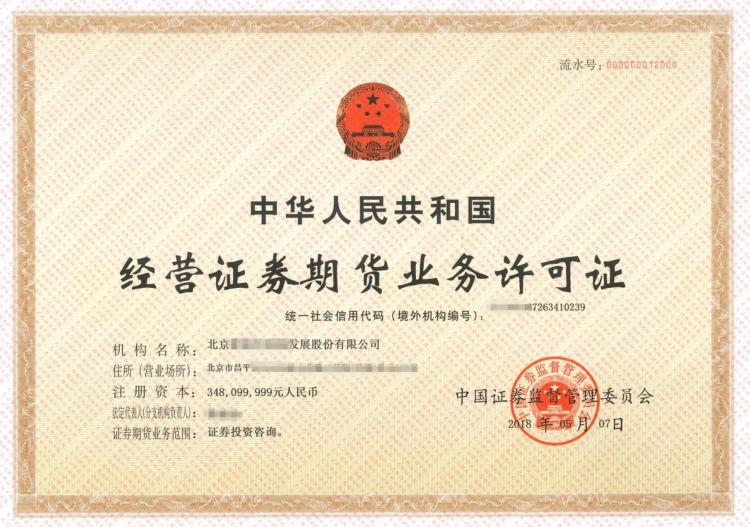 很多人可能没见过相关牌照长什么样子,好奇的人可以在音频下方文稿中查看图片,我在网上扒了一张照片供大家参考,图片中的正是经营证券期货业务许可证,也就是我们常说的牌照。如果对方向你提供了牌照,你也别着急信任他,你应该要求对方以拍照片的方式再发送给你一遍,为什么?因为对方很可能像我一样从网上扒了一张别人的业务牌照,事实上这么做的人也确实很多,所以为了防止这种情况发生,你可以要求对方再拍一次照片给你。